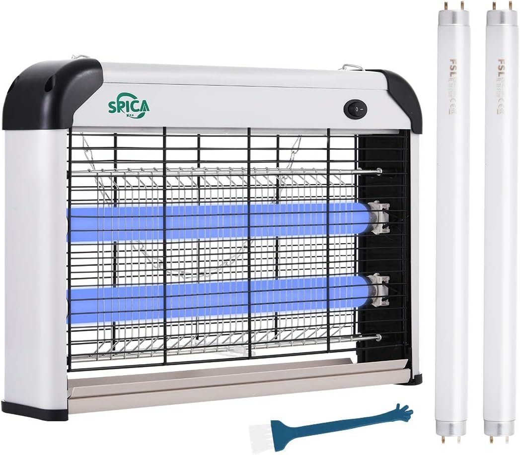 How SPICA Bug Zapper Works: The light attract mosquito, fly, bug, moth, fruit fly, bee, insects and all flying crawling pest (not only night time but also daytime), then 2800V power grid kills any hateful flying pests. 2 replacement bulbs included for longer use