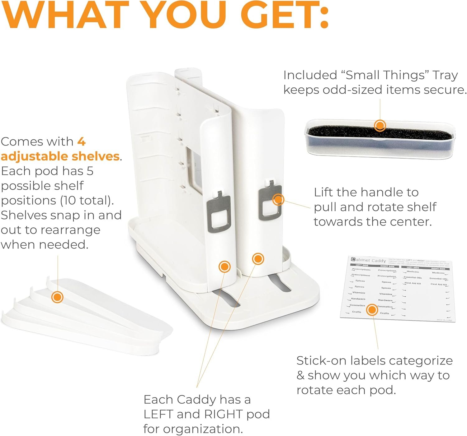 Includes Additional Accessories: Enhance your organizing experience with included extras. Utilize the stick-on labels for categorization, keep odd-sized items secure with the “Small Things” tray featuring stabilizing foam, and ensure stability with 3M non-skid feet. Optional 3M adhesive pads offer additional installation flexibility.