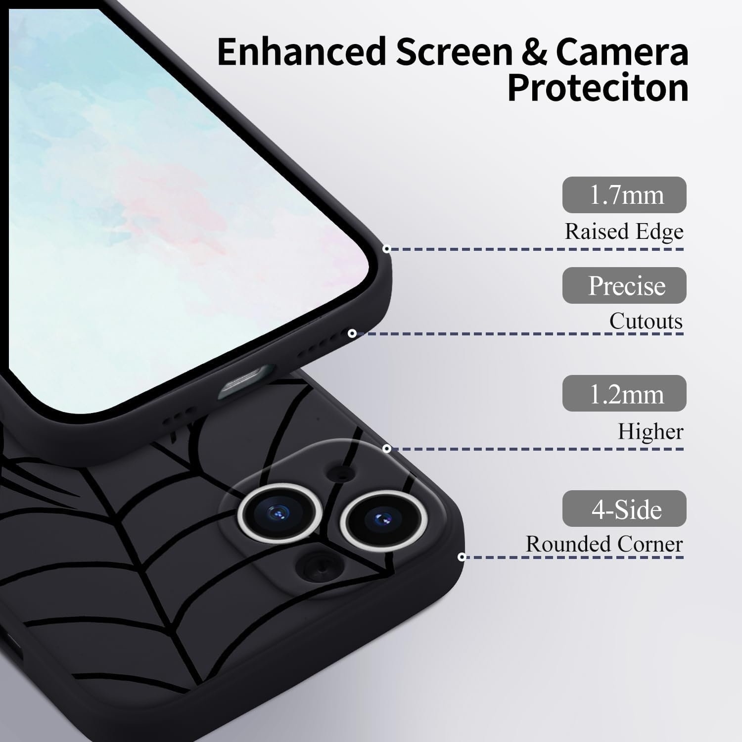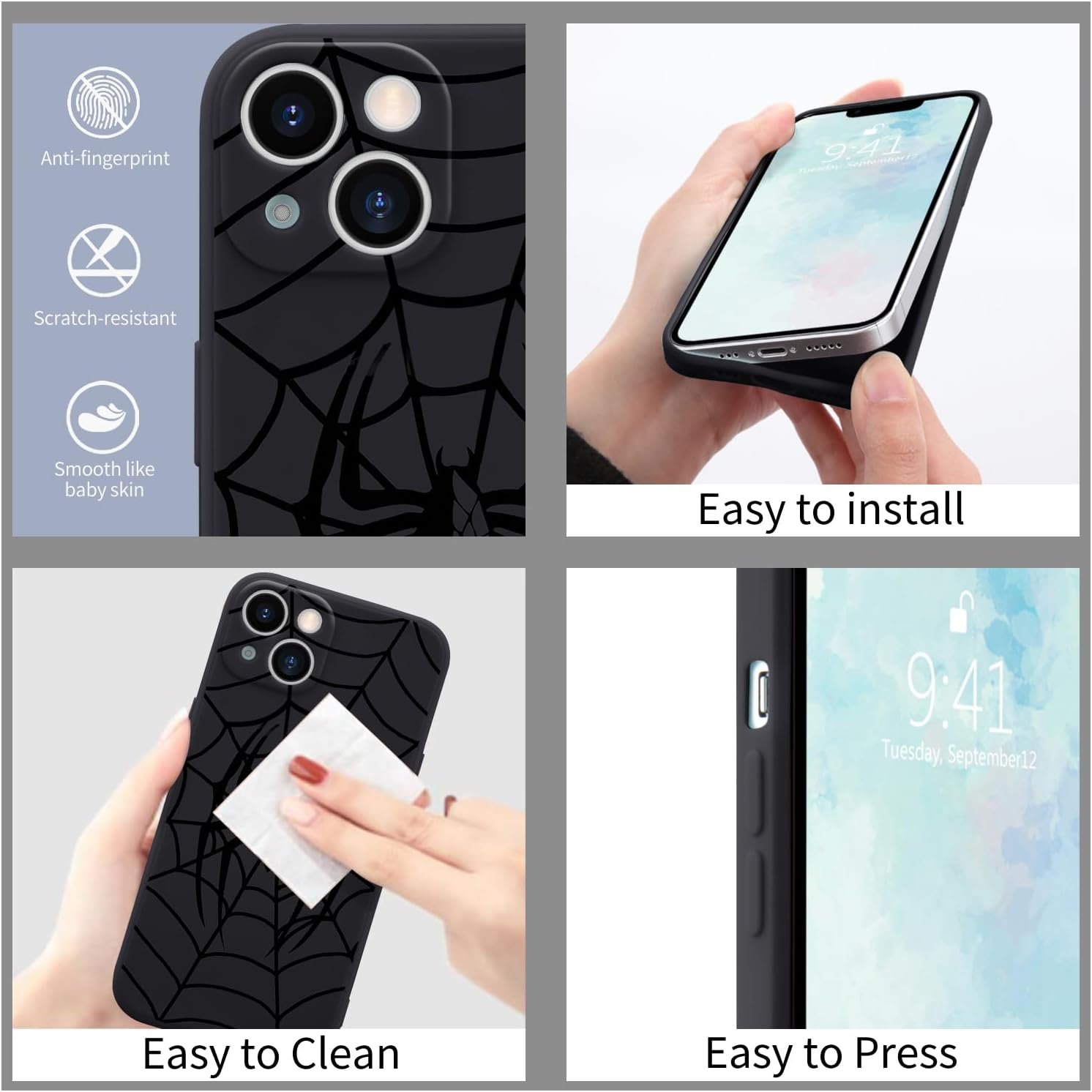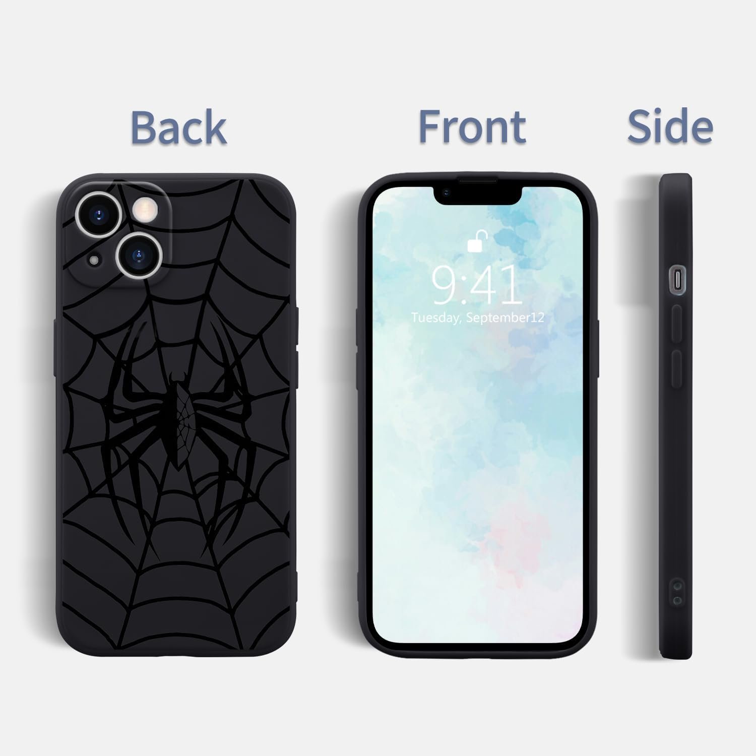Spider Black Phone Case for iPhone 13 Black Spider Web Case Cover Liquid Silicone Soft Gel Rubber Durable Matt Phone Cover with Microfiber Lining Protective Cover
