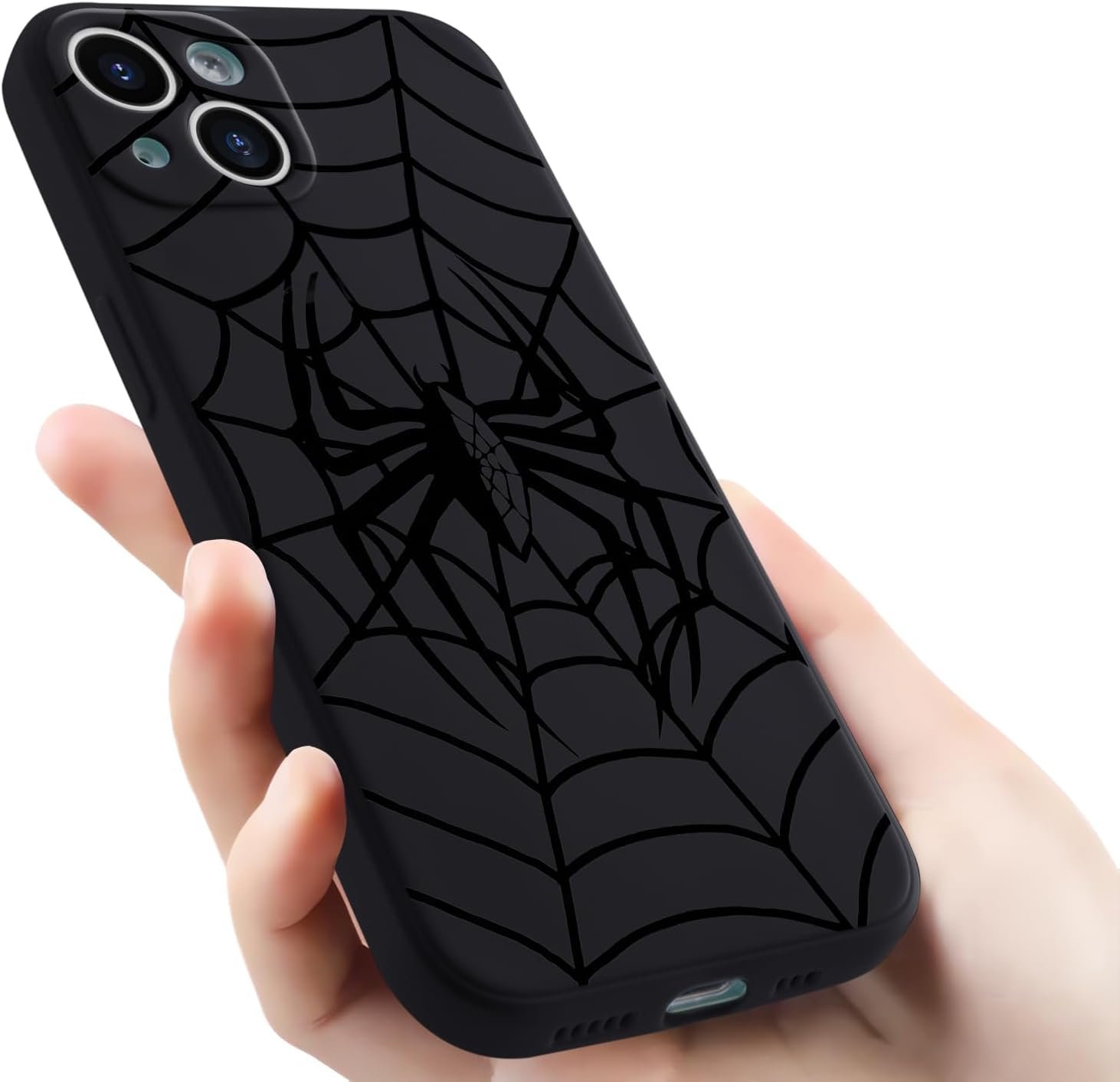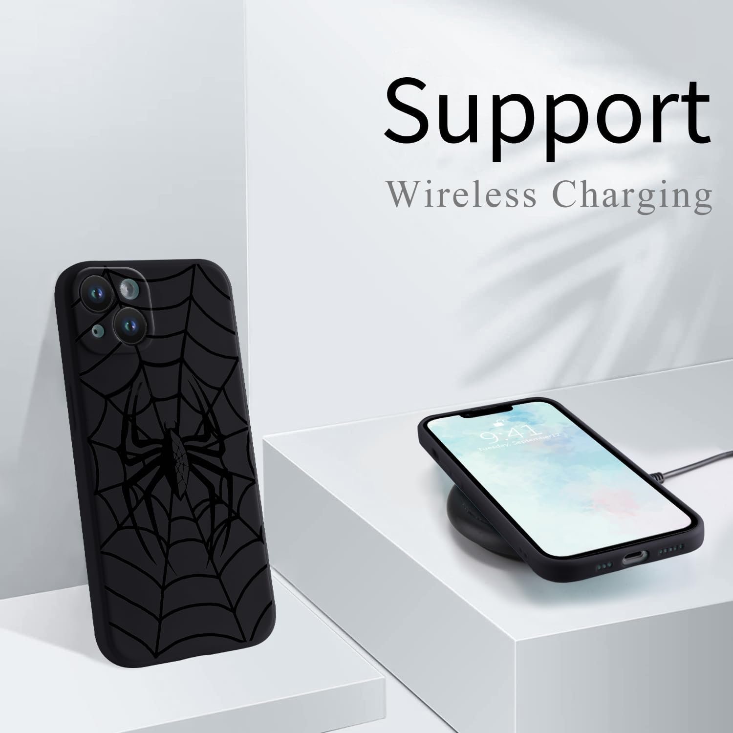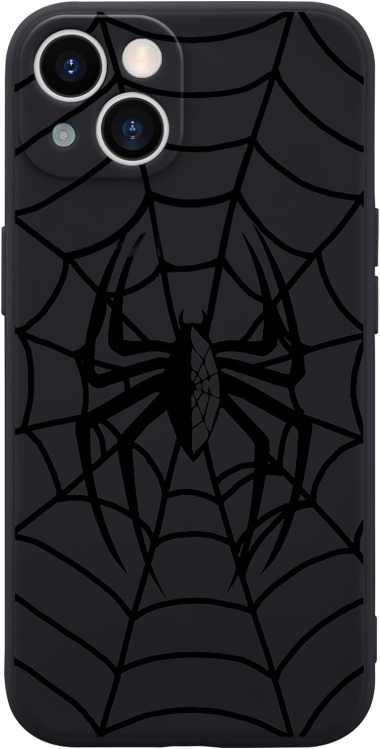 Spider Black Phone Case for iPhone 13 Black Spider Web Case Cover Liquid Silicone Soft Gel Rubber Durable Matt Phone Cover with Microfiber Lining Protective Cover