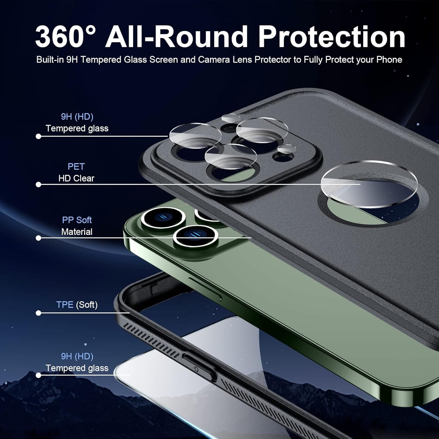 【Built-in Camera Lens Protectors】With built in 9H HD tempered glass camera lens protector,offers enough protection for your valued phone cameras at the same time provide high quality picture taking.The design of an oleophobic layer prevents water,oil,dust.keep your phone lens in HD transparent and clean all the time.