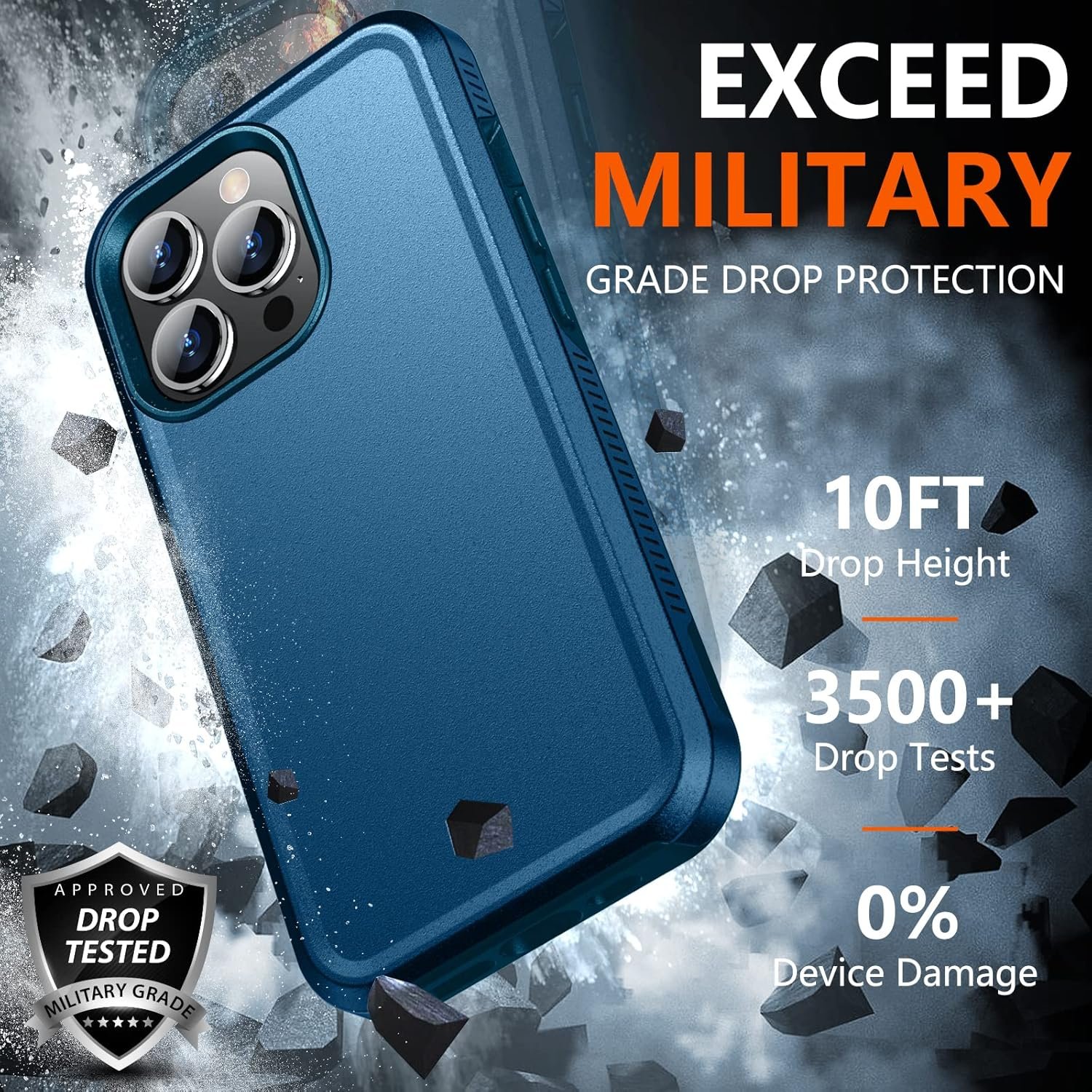 【Thorough Camera & Screen Protection】 Raised lips protecting iPhone 13 pro max screen and camera thoroughly. 1.5mm raised lips over screen and 1.5mm raised lips over camera relieves impact and protects the phone screen and camera against drop damage, cracks and scratches. Reinforced corner effectively absorb bumps from any angle drop.