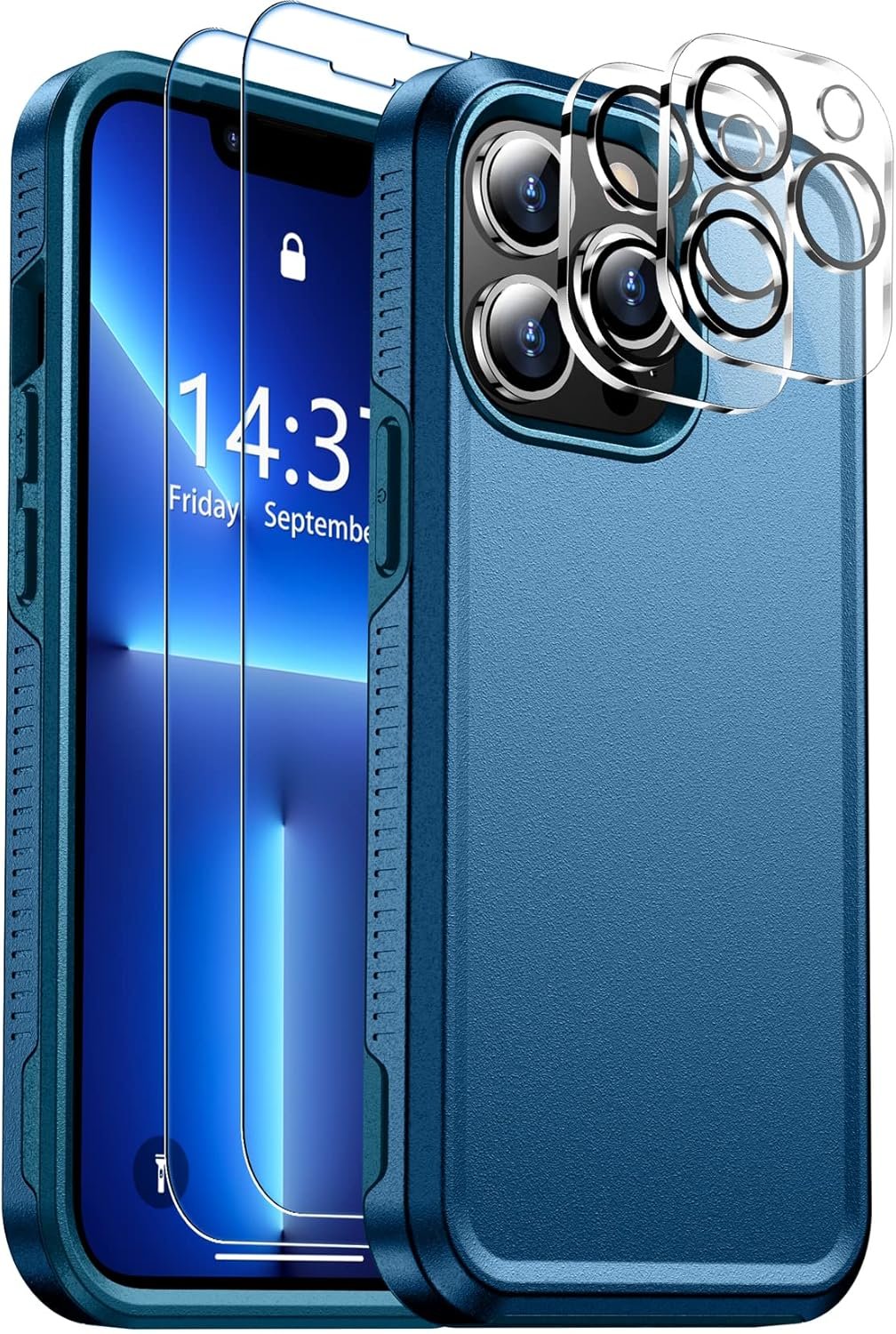 SPIDERCASE Designed for iPhone 13 Pro Max Case,with 2 Pack [Tempered Glass Screen Protector + Camera Lens Protector][10 FT Military Dropproof] Tough Rugged Heavy Duty Full-Body Protection (Sea Blue)