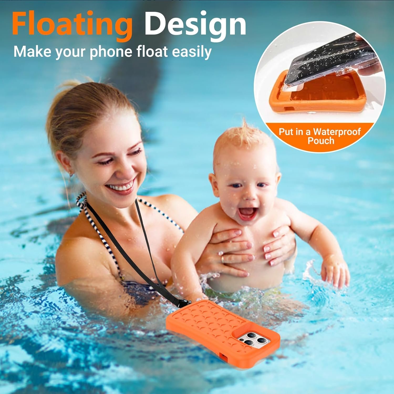 [EVA Environmentally Friendly Material] The floating phone case is made of EVA environmentally friendly material,which has a smooth and soft touch,rich elasticity,good grip,and is harmless to the skin. Adults/children can use it with confidence,weighing the same as feathers.And it has also passed military drop tests up to 20 FT, to protect your phone at anytime,anywhere.