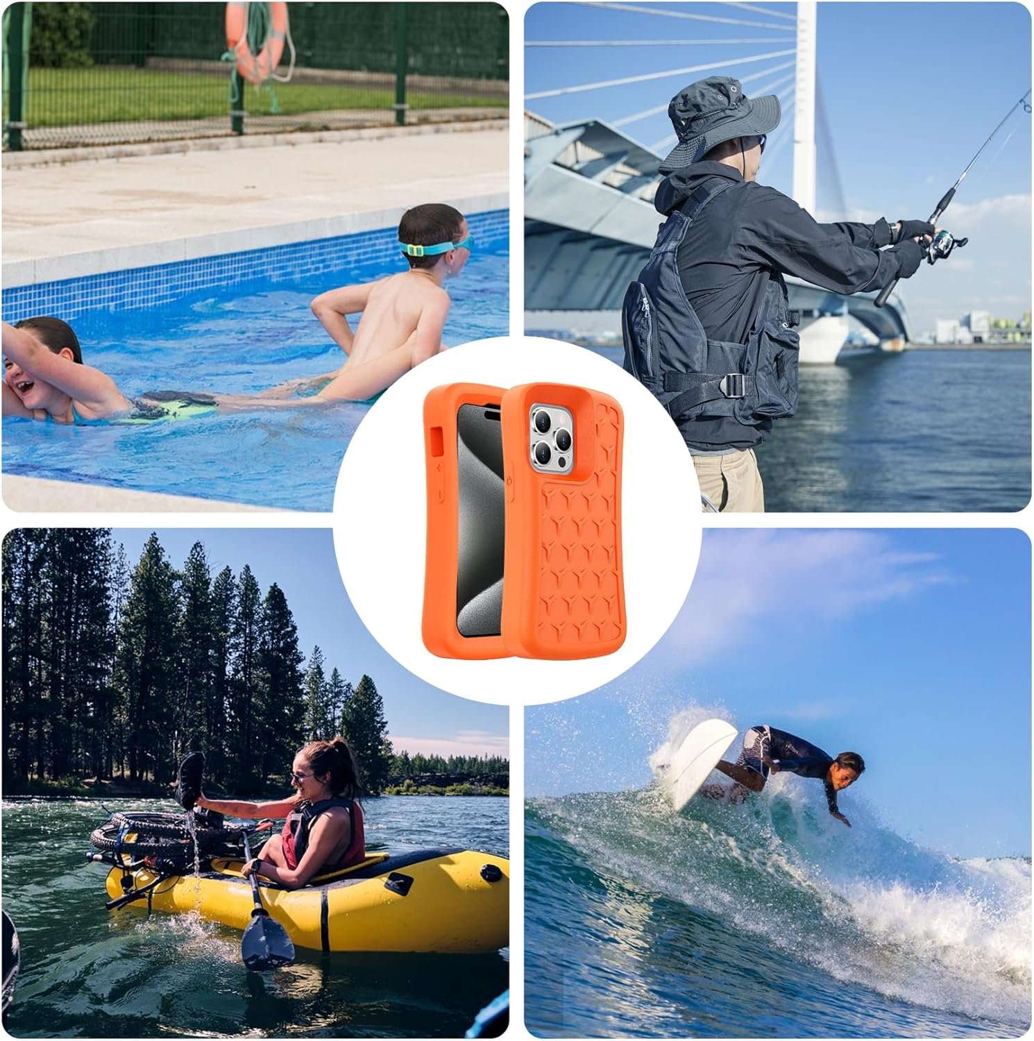[Unique Design] Super buoyant allows it to float like a kayak without sinking. Even if your phone falls into the water,our floating iphone case can bring your phone to the surface,and the bright,conspicuous orange color allows you to quickly find your phone.Add security to your Marine entertainment.Suitable for surfing,swimming,boating, rafting,fishing and other water activities.