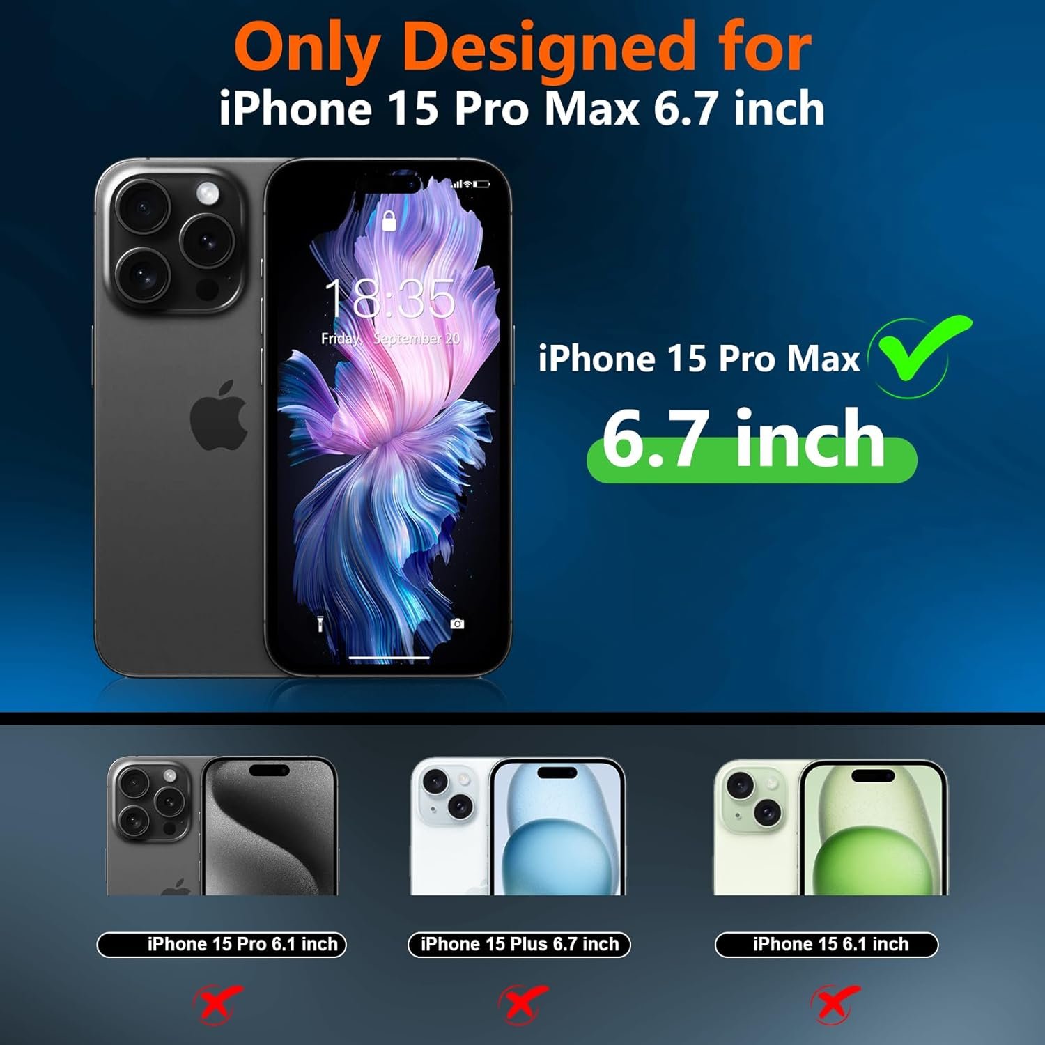 【Clearer Sound Quality & Wireless Charging】This iPhone 15 pro max case uses a special upgrade material that is precisely measured,perfect match with speaker to maintain clear sound quality.You can also open the charging port cover for better calls without worrying about the volume.Enjoy uninterrupted music and call quality.The iPhone 15 pro max case is compatible with all wireless chargers and can be easily charged.
