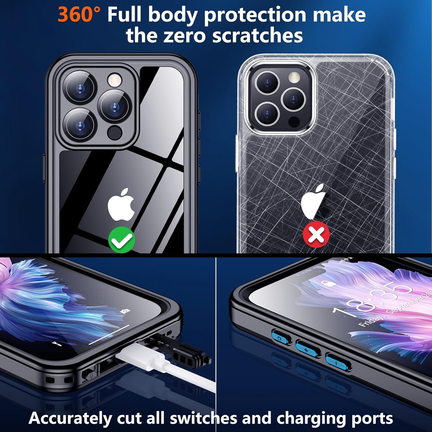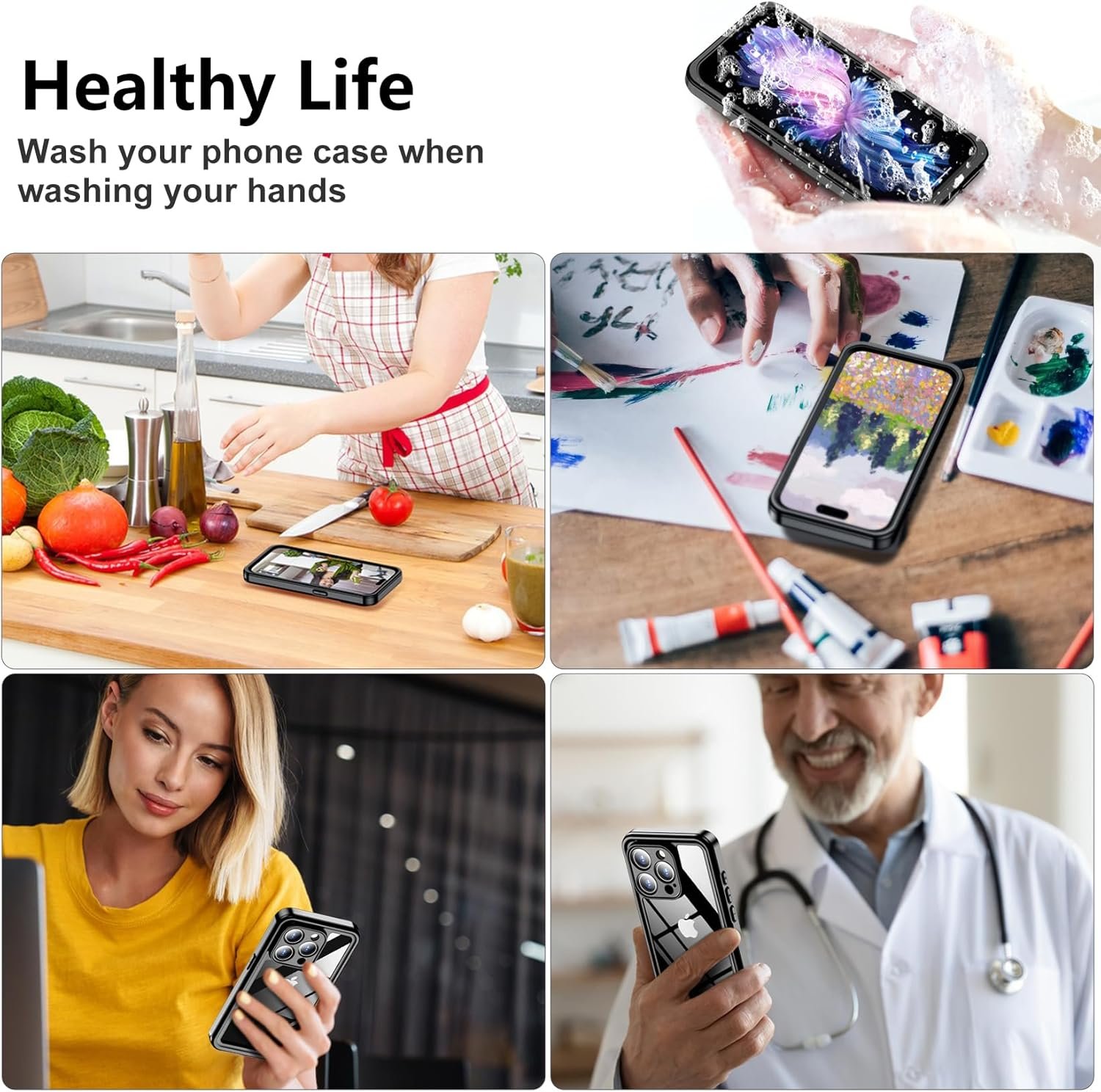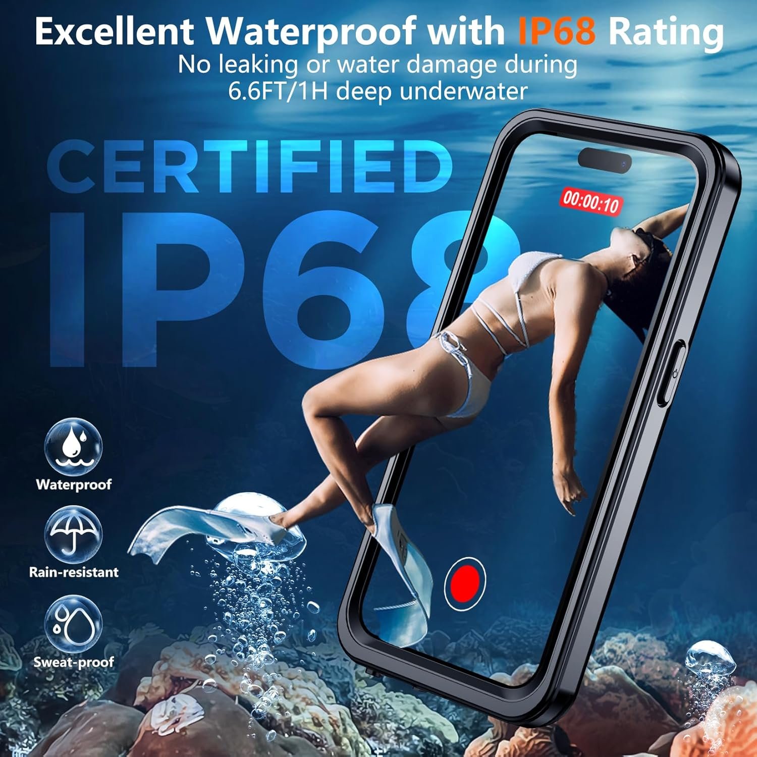 【IP68 Waterproof】This iPhone 15 pro max waterproof case is resistant to water,dust,dirt,snow and spills and splashes from everyday liquids.In addition,the washable design ensures easy cleaning and keeps your phone and case always stay clean and looks like new.The iPhone 15 pro max case is Perfect for any underwater activities,outdoor sports and daily use like swimming,snorkeling,surfing and more.(Note: Please check all of the plugs are sealed before using).