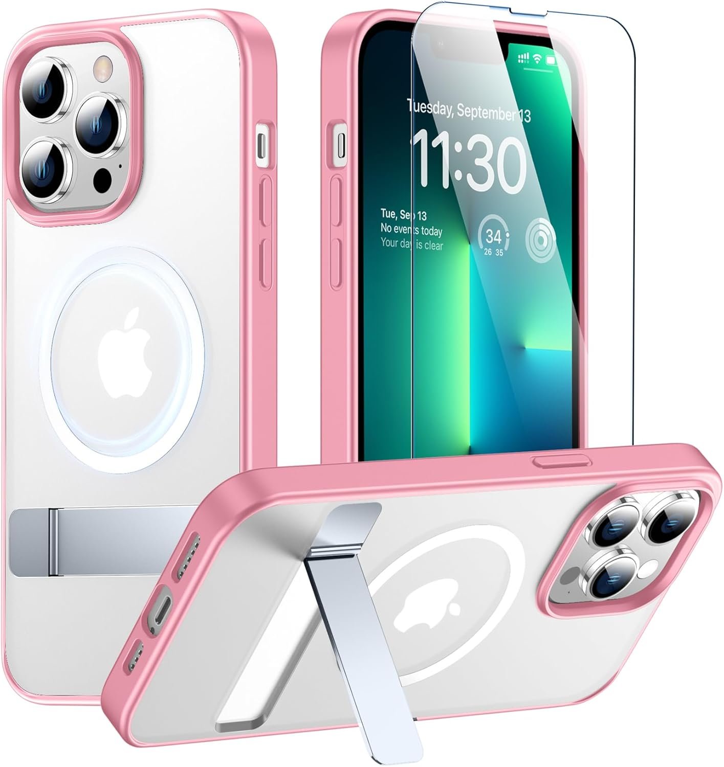 SPIDERCASE Magnetic for iPhone 13 Pro Max Case, with 2Pcs [Tempered Glass Screen Protector] [ Military Grade Drop Protection] Invisible Kickstand Slim Case for iPhone 13 Pro Max 6.7″, Light Pink