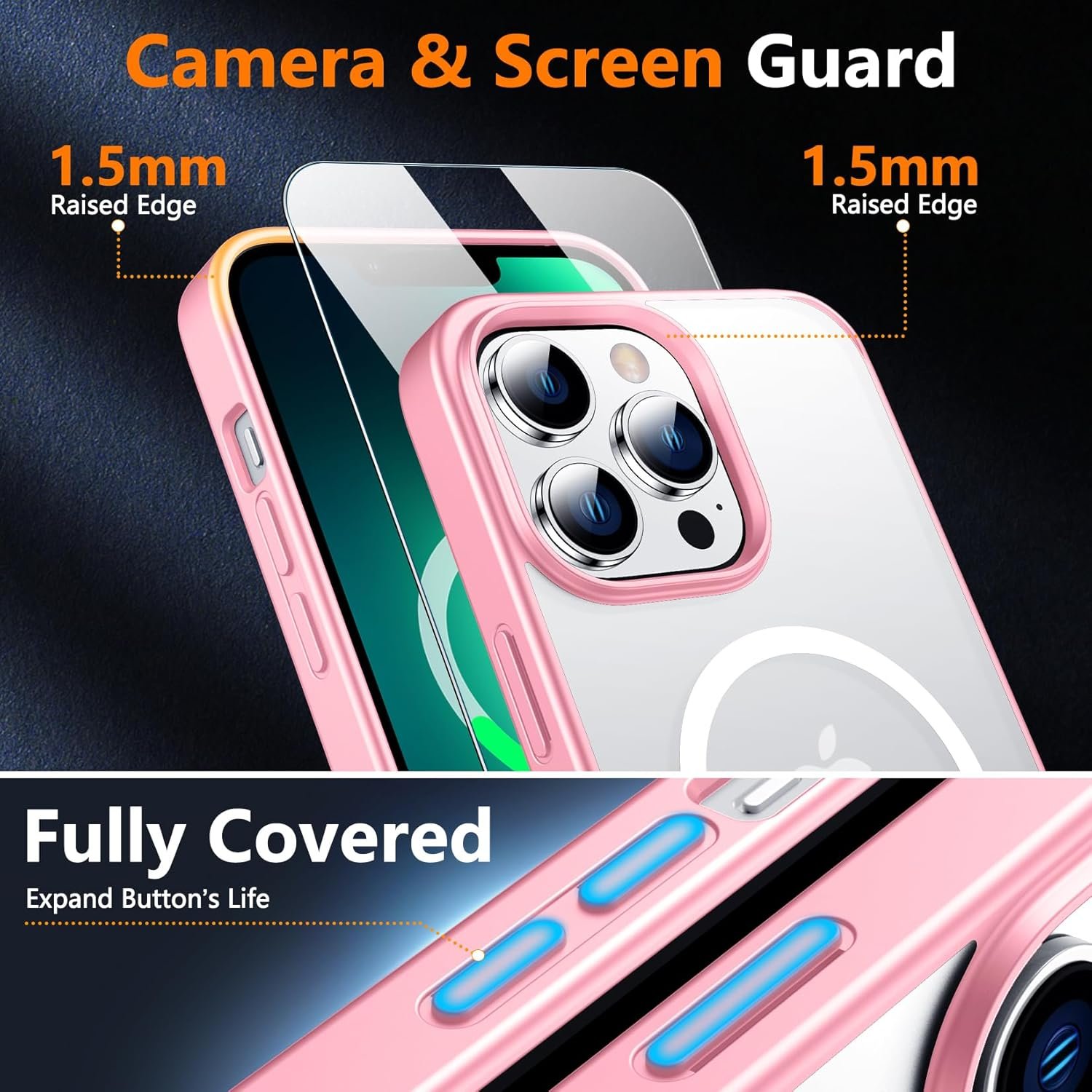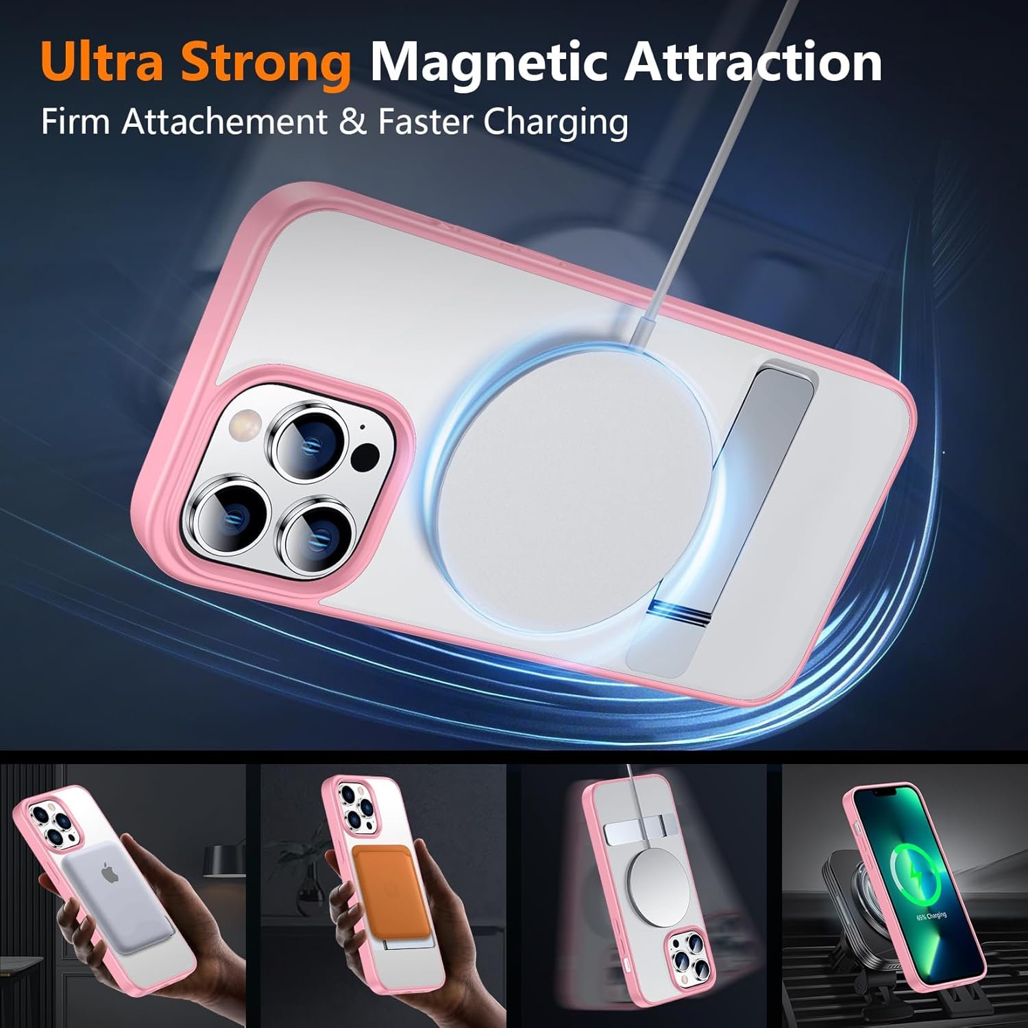 [Super Strong Magnetic] With a built-in magnetic ring that aligns perfectly with magnetic chargers, this case offers a stronger attachment and faster charging speed. Compatible with all magnetic accessories and wireless chargers (such as car wireless charger, wireless power banks, magnetic wallets, etc).