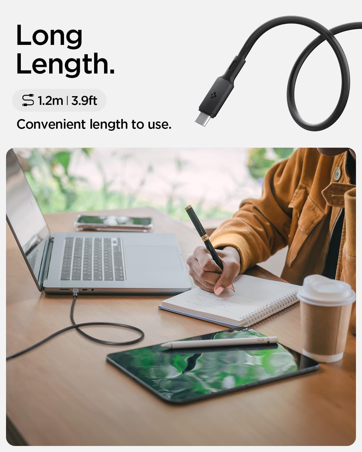 Spigen ArcWire USB-C to USB-C Cable (USB-IF Certified,3.9ft/1.2m, EPR 240W, USB4 Gen3 40Gbps), Reusable Cable Tie, User Manual