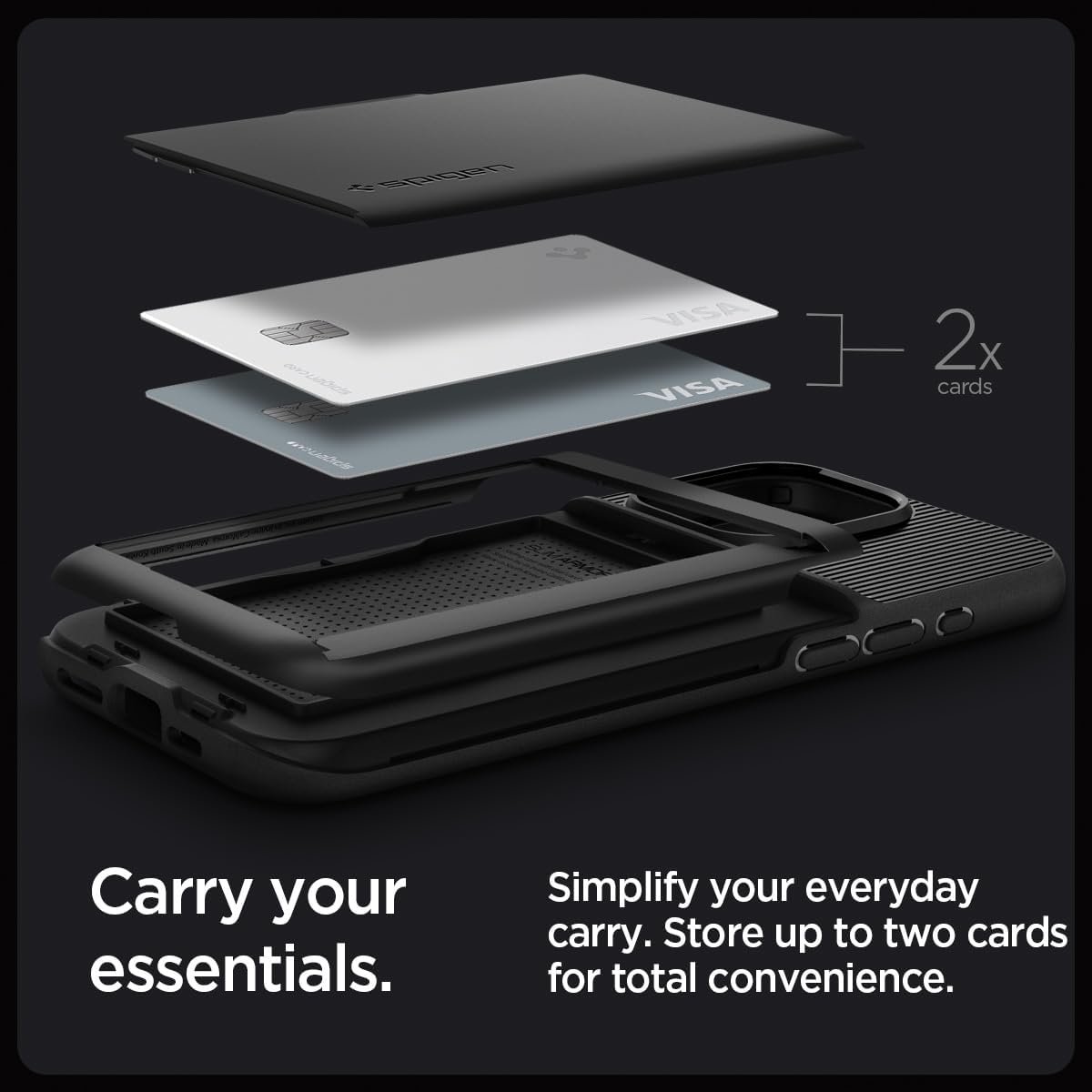 Exterior card slot holds up to 2 cards
