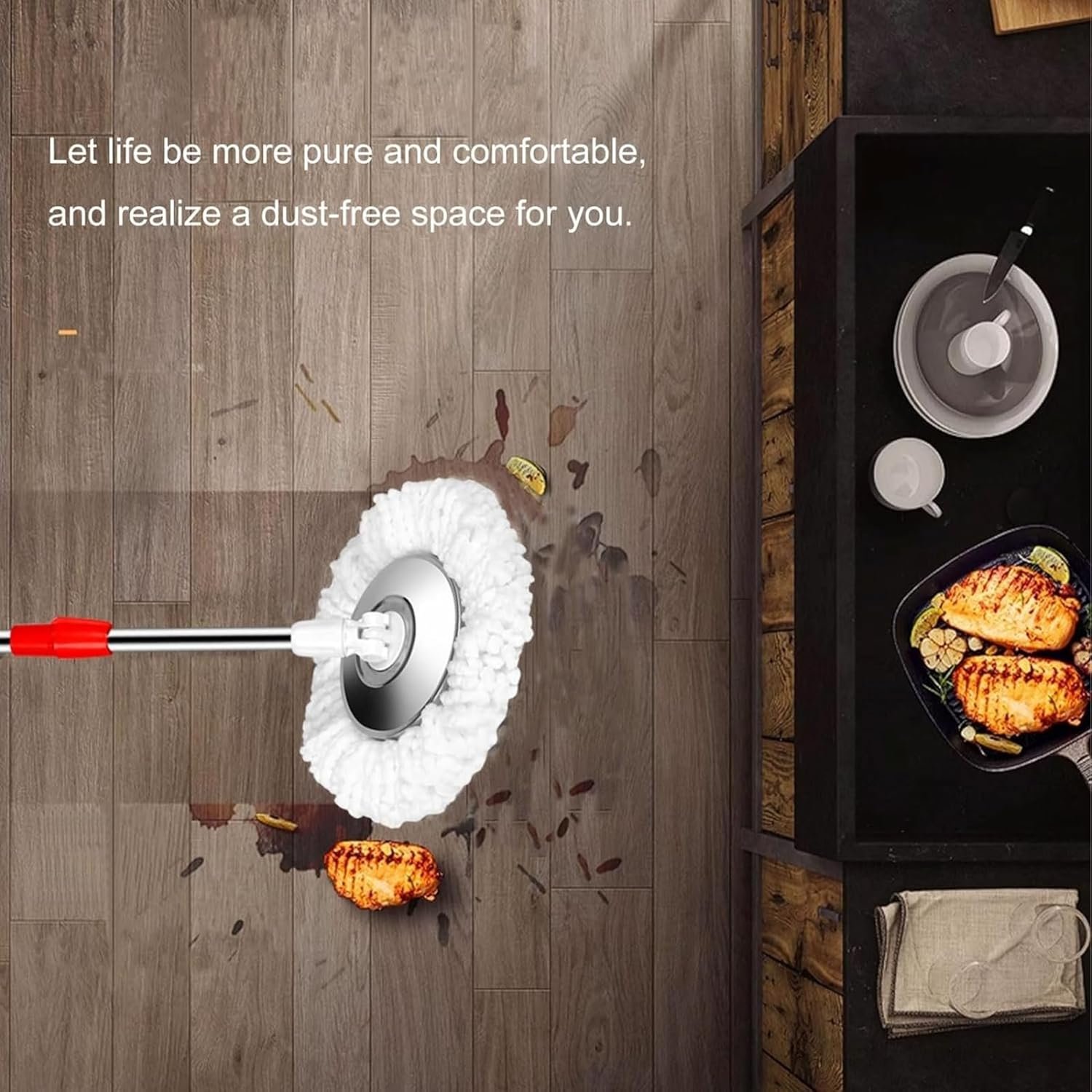 Microfiber Spin Mop Head: 3 pcs machine washable microfiber replacement mop head is designed for deep cleaning floors, effortlessly removing hair, dust, and stains with just water. This spin mop is suitable for cleaning a variety of floor surfaces and can also be used on windows, tiled walls, or wood walls