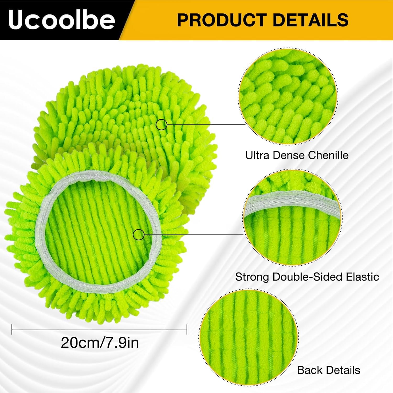 Chenille Mop: These mop head refills are made with chenille material, specifically designed to clean dust, dirt, grease, debris, and pet hair. The inner side features microfiber material for absorbing water stains. Suitable for both dry and wet use, they meet all your cleaning needs.