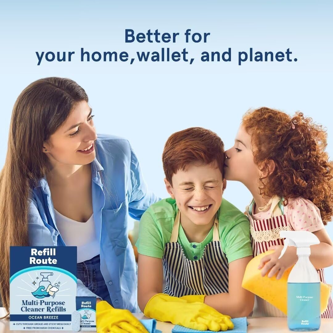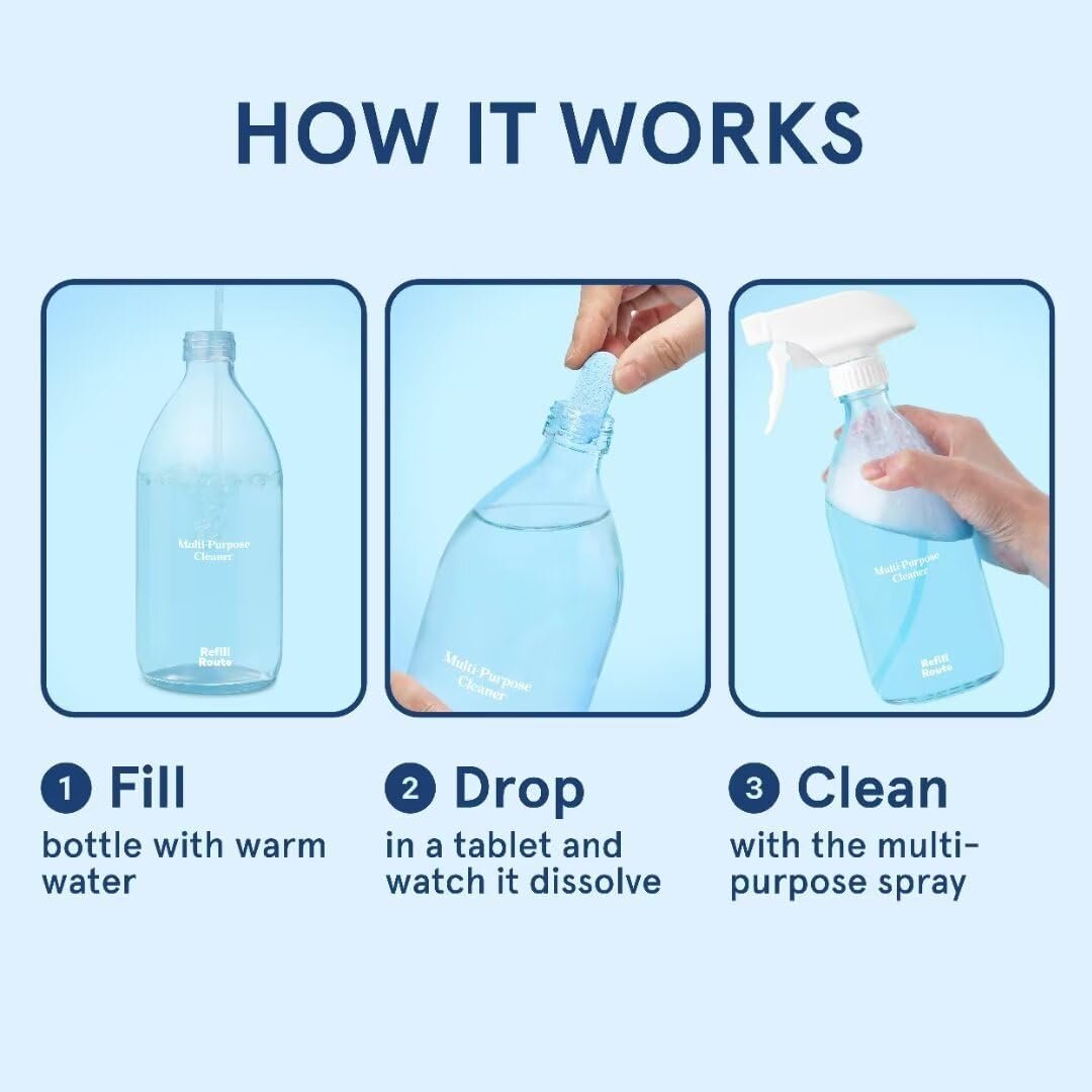 【Save Time, Money & Space】 Refill Route multi purpose cleaner is more convenient and cheaper to refill than traditional bulky & messy liquid cleaner. Easy to store, optimizes space. Cleaning tablets perform & last the same as standard 16 fl oz cleaning spray found in local supermarkets