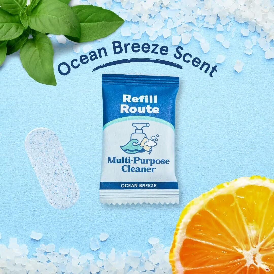 【12 Splash Spray Tablets】 Better for your home, budget! Elevate your cleaning routine with Refill Route’s ocean breeze cleaning spray tablets. Simply dissolve one tablet in water to create 16 fl oz of powerful multi surface cleaner