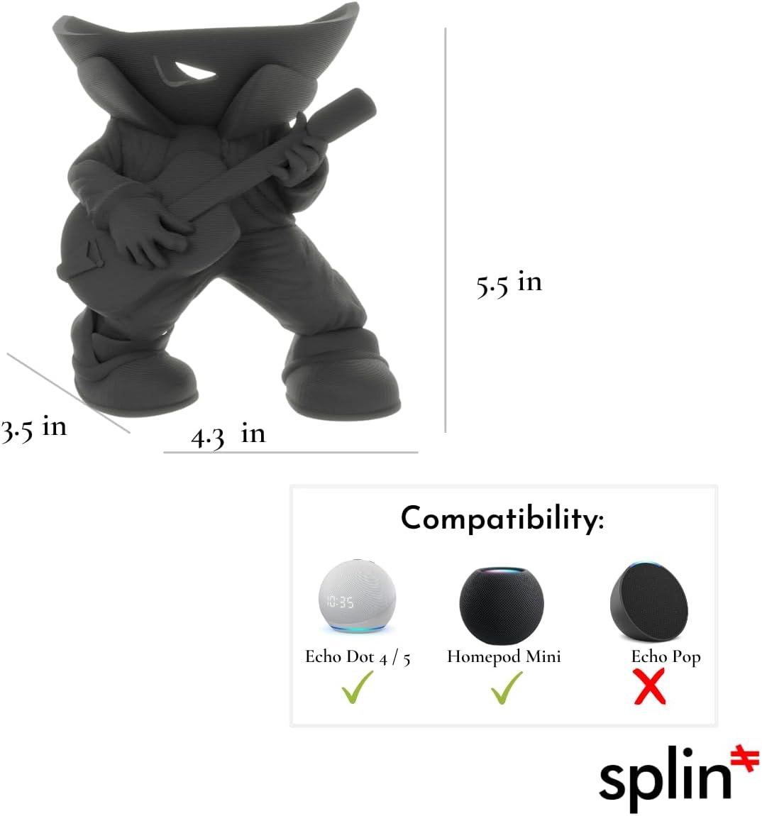 Splin Table Stand Holder Compatible with Amazon Alexa Smart Speaker Echo Dot (4th and 5th gen.) and Apple HomePod Mini, Vegas Boy (Black)