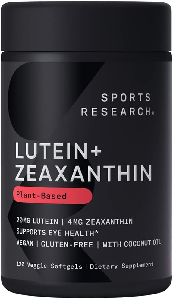 Sports Research® Lutein and Zeaxanthin Capsules – Eye Health Support Supplement Made with Lute-Gen® and Organic Coconut Oil – Vegan Friendly & Non-GMO Verified – 120 Veggie Softgels