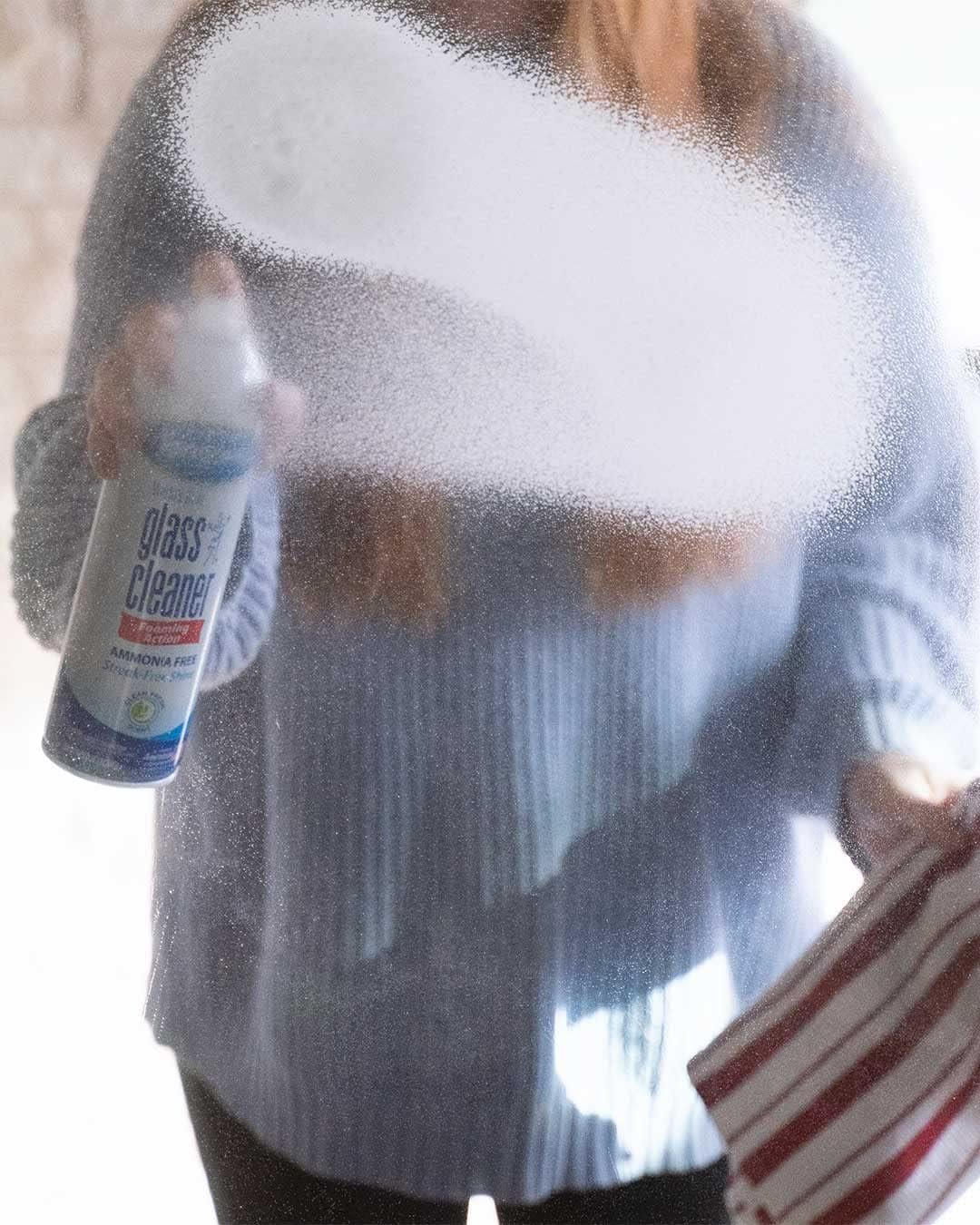 For cleaning and polishing glass, mirrors, windshields and windows. This easy-to use, fast acting product uses a clinging foam to break up soils and hold them – even on vertical surfaces. There is no dripping, no running and no streaking. With an exclusive formulation using denatured alcohol and no ammonia, this product cleans thoroughly, dries quickly, requires no rinsing and leaves a pleasant, fresh aroma. USES: Spray on and wipe off to remove fingerprints, dust, dirt, lipstick, smoke film and other common soils from: windows, mirrors, windshields, glass.