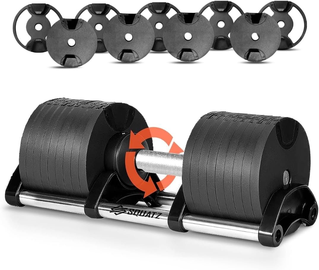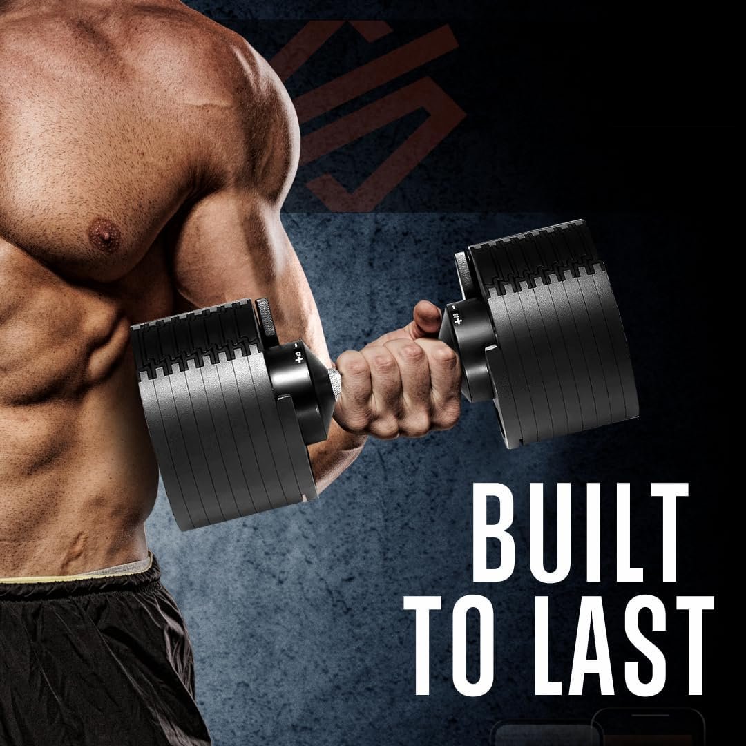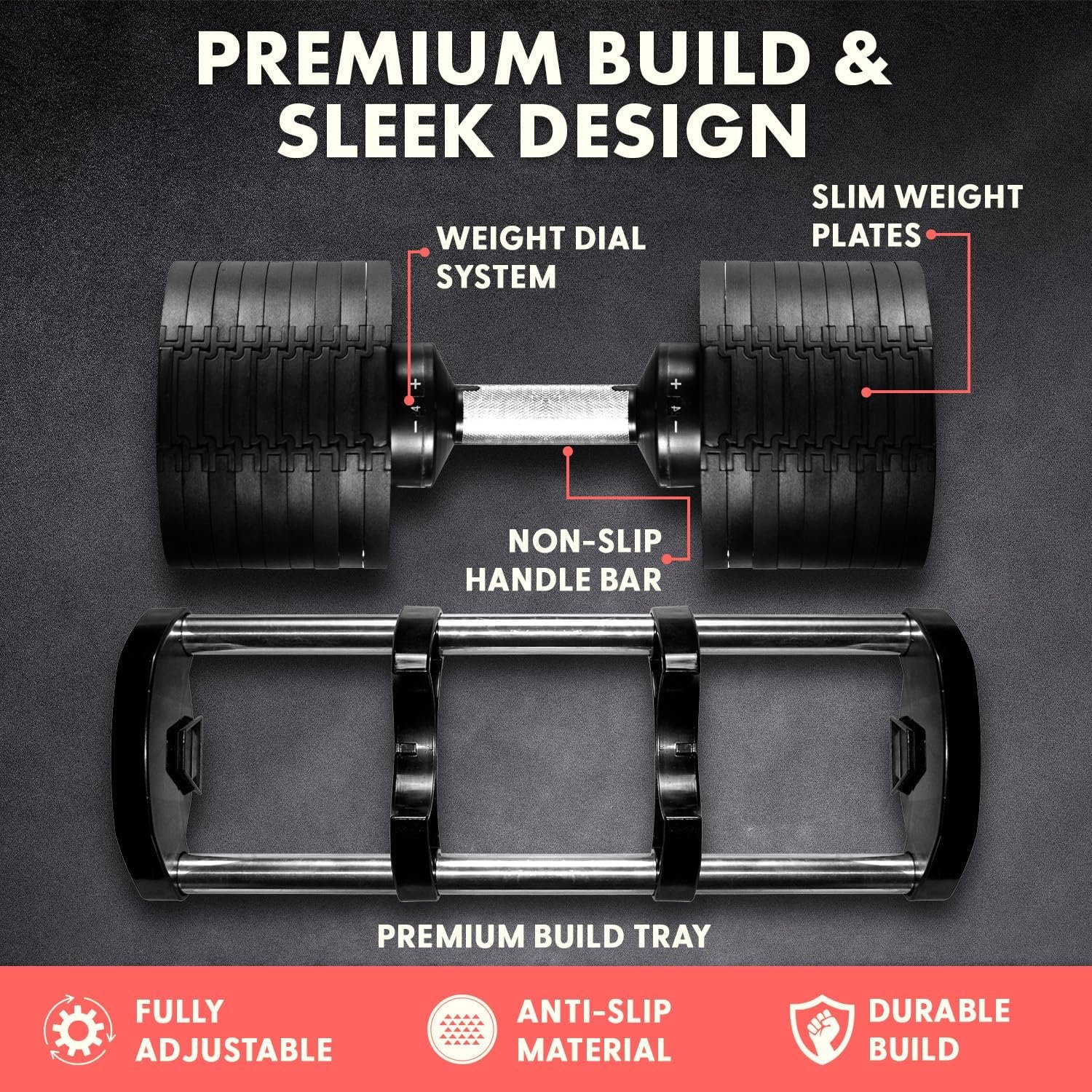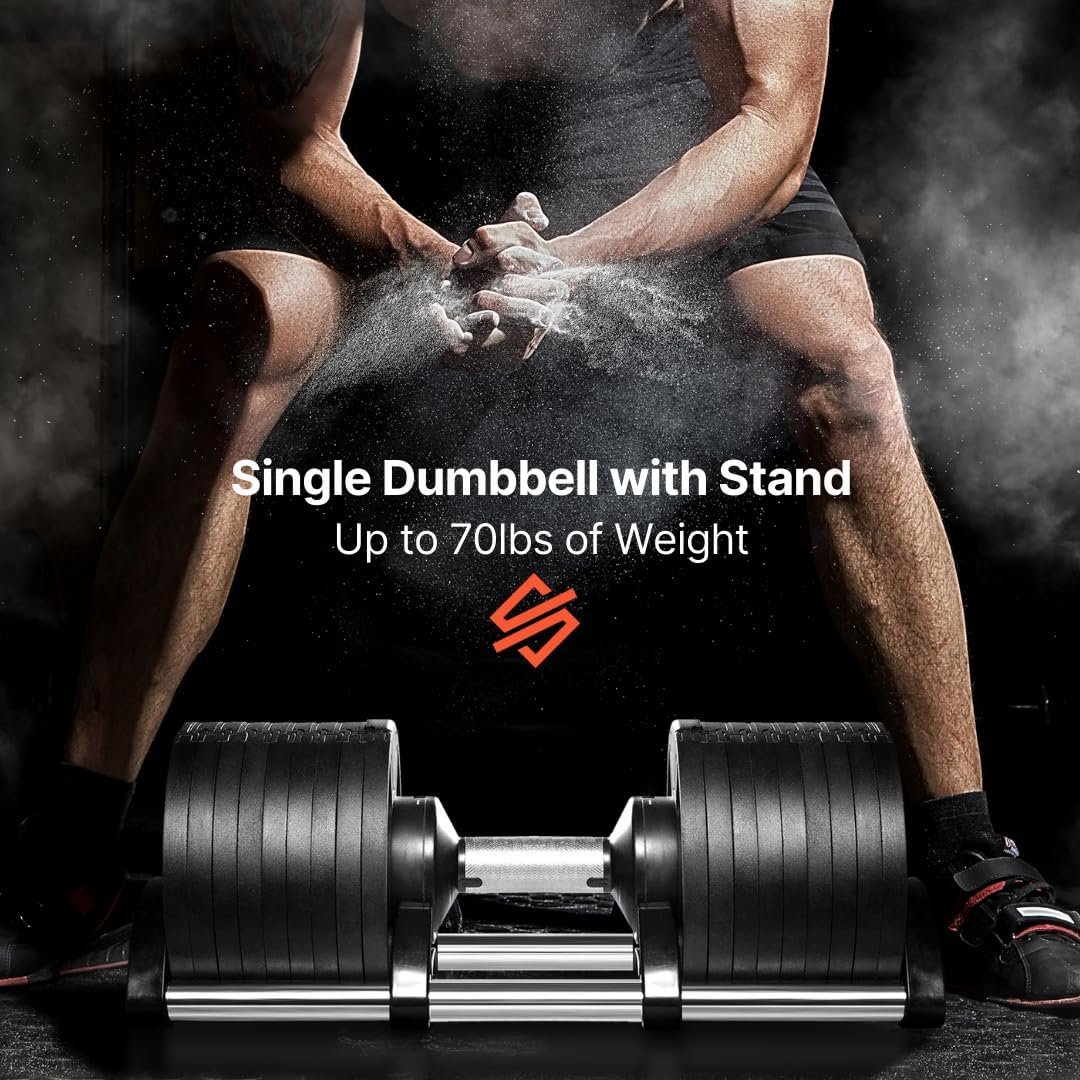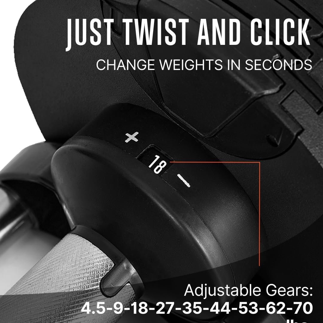 PREMIUM BUILD QUALITY: Adjust weights from 4.5, 9, 18, 27, 35, 44, 53, 62, and 70 lbs pounds. Includes dumbbell stand. Makes switching weights easy. get a full gym experience!