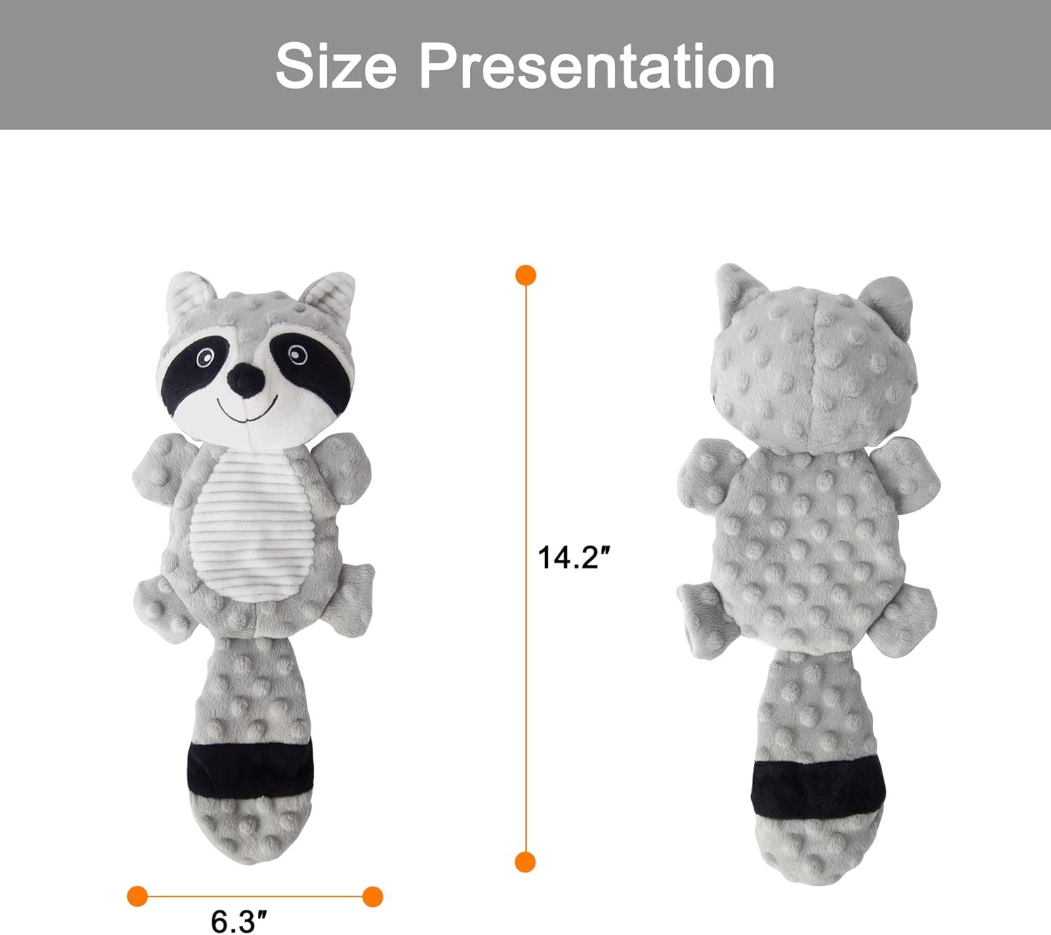 A ROPE DOG TOY: This raccoon animal dog toy is designed with two “X” shaped cotton ropes. Dog rope toys are best for your dog teeth cleaning, chewing, fetching, and tugging also tugging A CRINKLE DOG TOY: Our doggie squeak toy also comes with crinklers inside to attract your puppy dog even more A SQUEAKY DOG TOY: Dog toys with squeakers stimulate your dogs’ curiosity, keep them engaged & out of boredom