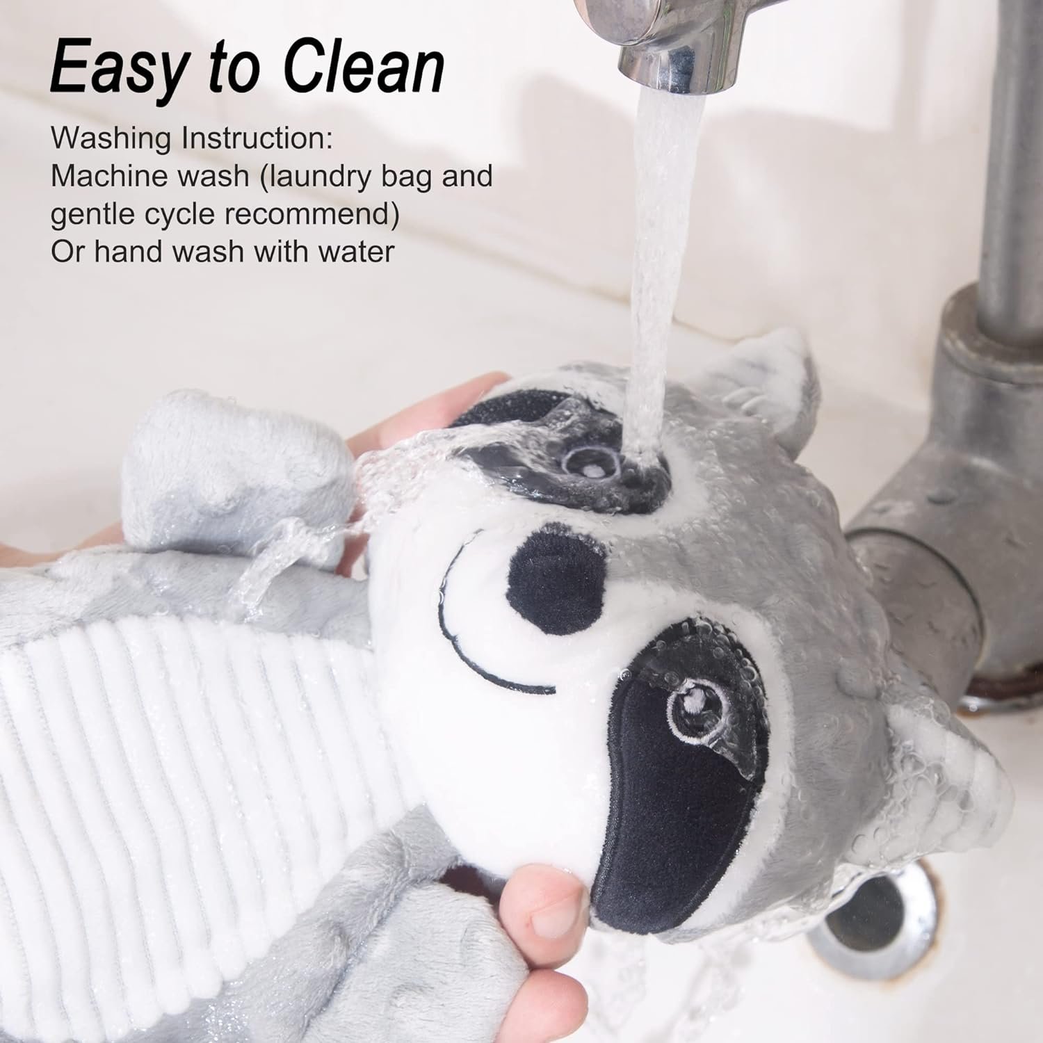 This Raccoon dog plush toy is made with no stuffing in the body to maximize its life time, leave no mess and it is machine washable.