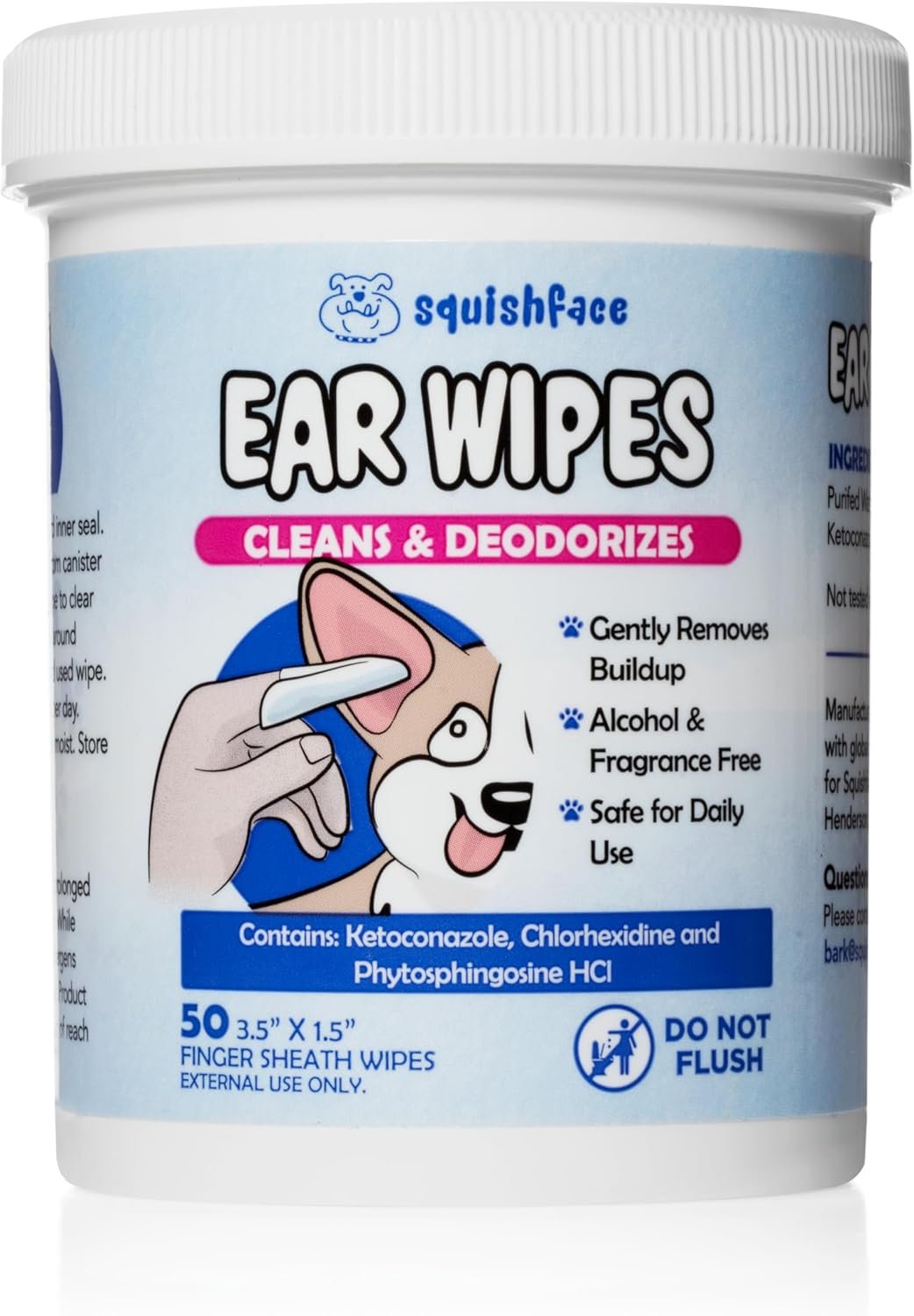 SAFE FOR DAILY USE FOR ALL BREEDS: Squishface ear wipes can clean tough spots and offer relief for any breed of dog! Ear infection-prone breeds such as French Bulldogs, Labrador Retrievers, Golden Retrievers, German Shepherds, Poodles, Rottweilers, Beagles, Dachshunds, German Shorthaired Pointers, Pembroke Welsh Corgis, Australian Shepherds, Yorkshire Terriers, Cavalier King Charles Spaniels, Doberman Pinschers, and all other breeds can enjoy the benefits of daily cleaning