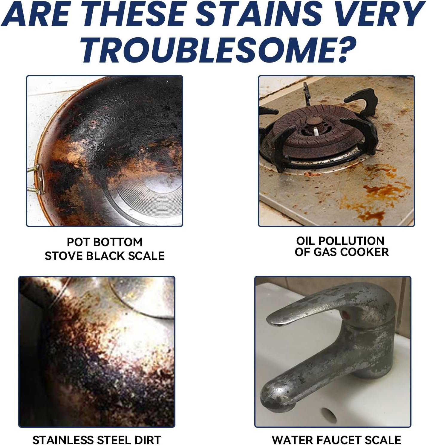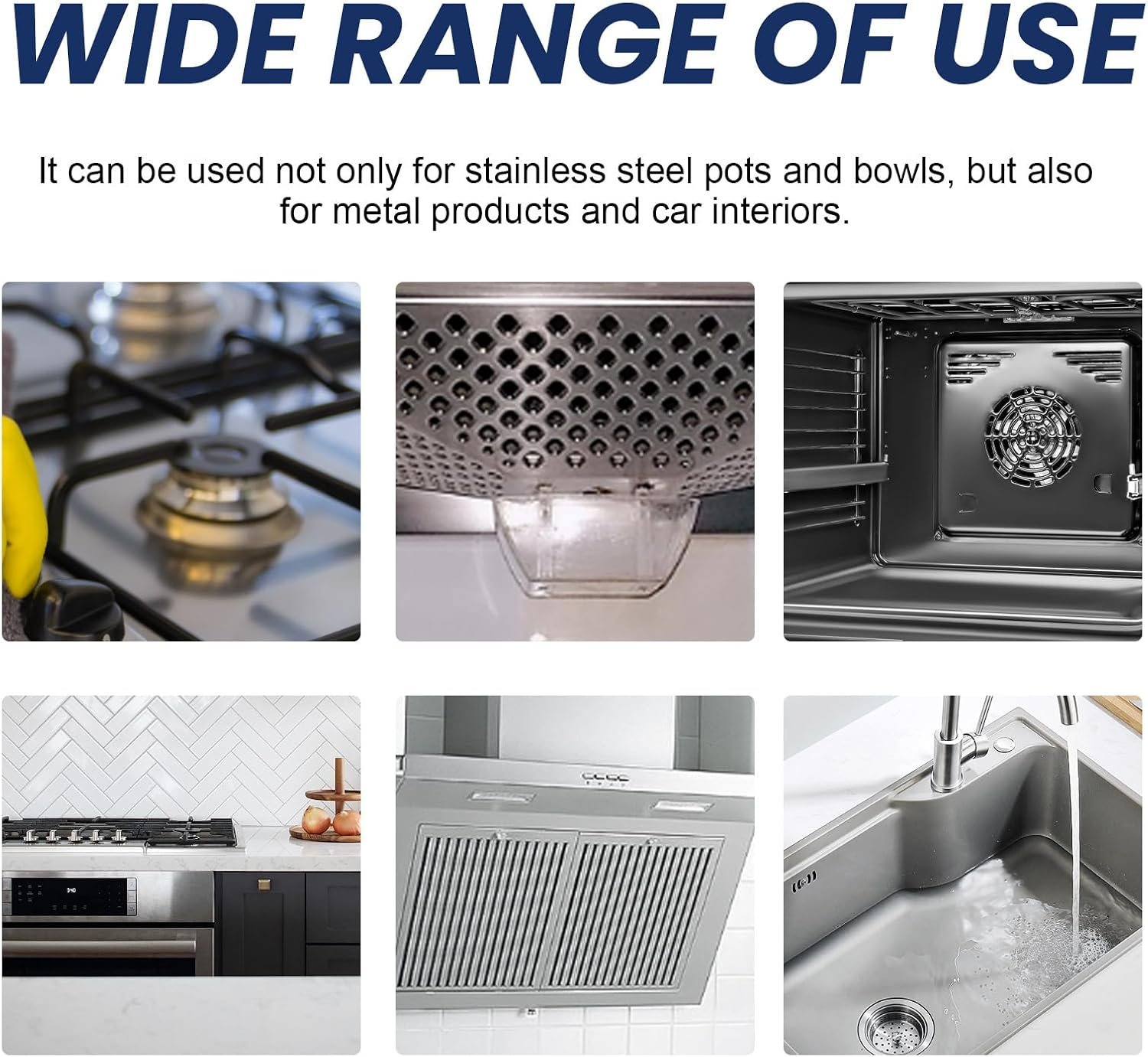 【Easy to Use】Simply apply the magical nano stainless steel cleaning paste to a scouring pad and wipe gently. For stubborn stains, spray a little water on the surface to be cleaner before using the cleaner. After wiping, rinse with a clean rag or water
