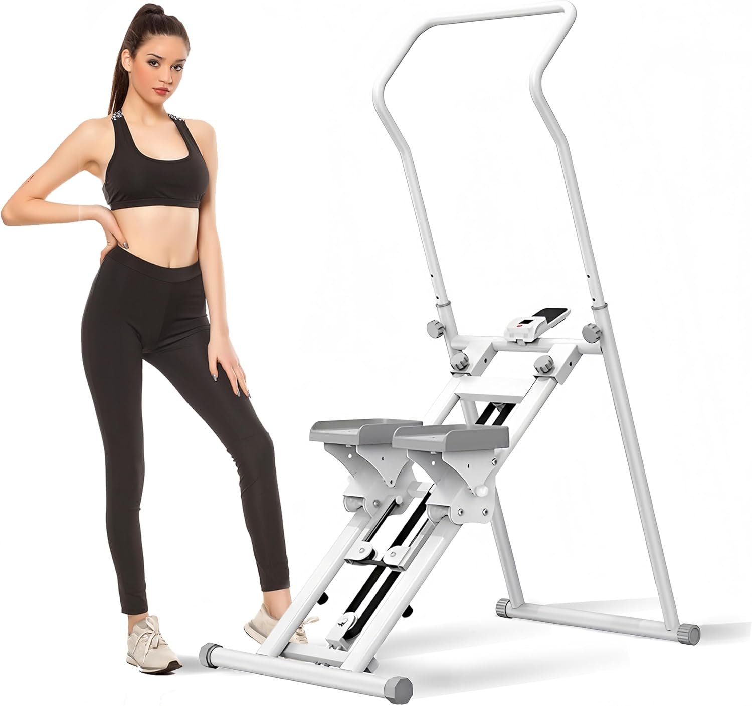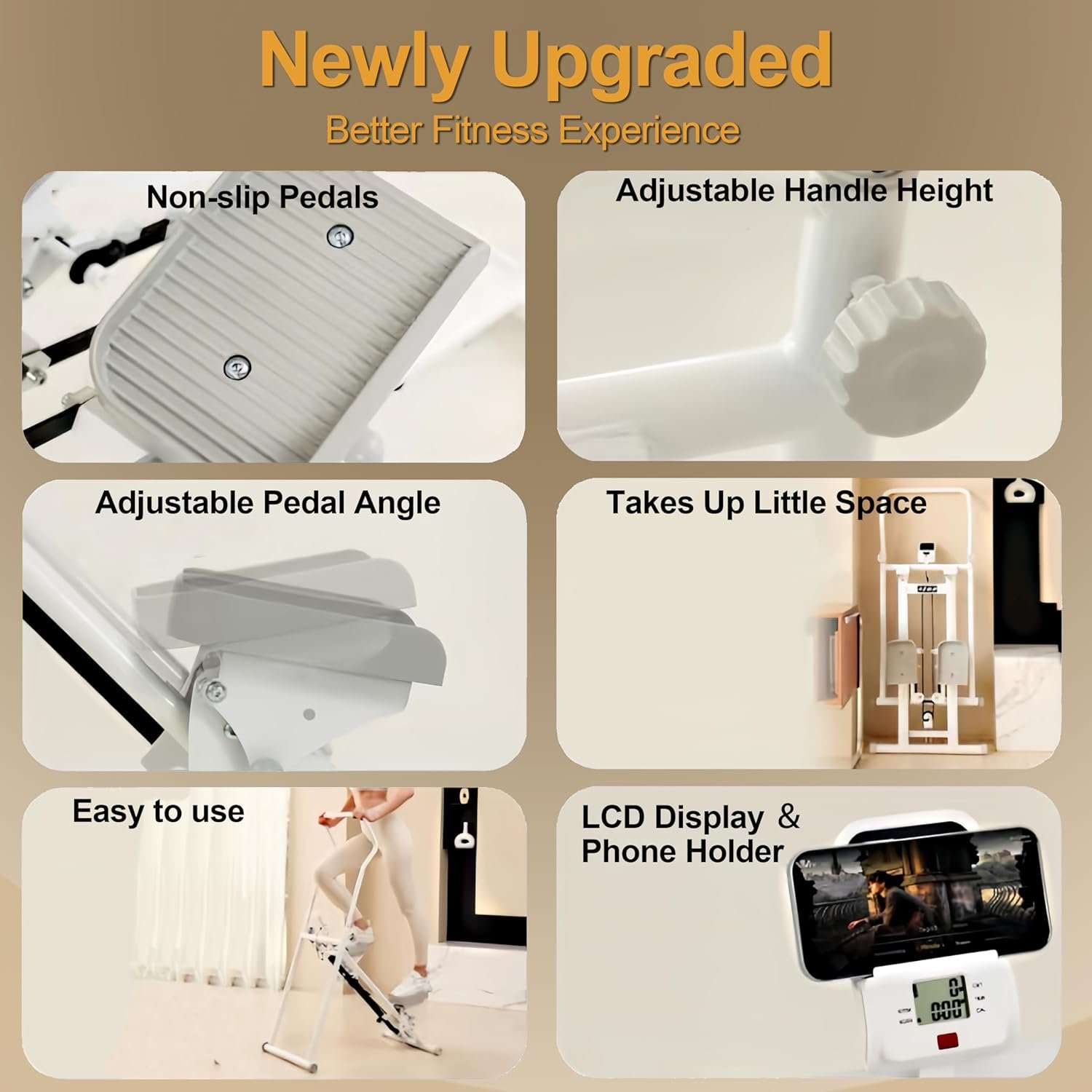 【Real-Time Monitoring and Safety Features】: The climber includes an easy-to-read LCD monitor that tracks workout time, steps, and calories burned, keeping users motivated. Its robust frame supports up to 300 lbs, with non-slip pedals and secure handlebars ensuring a safe workout experience.