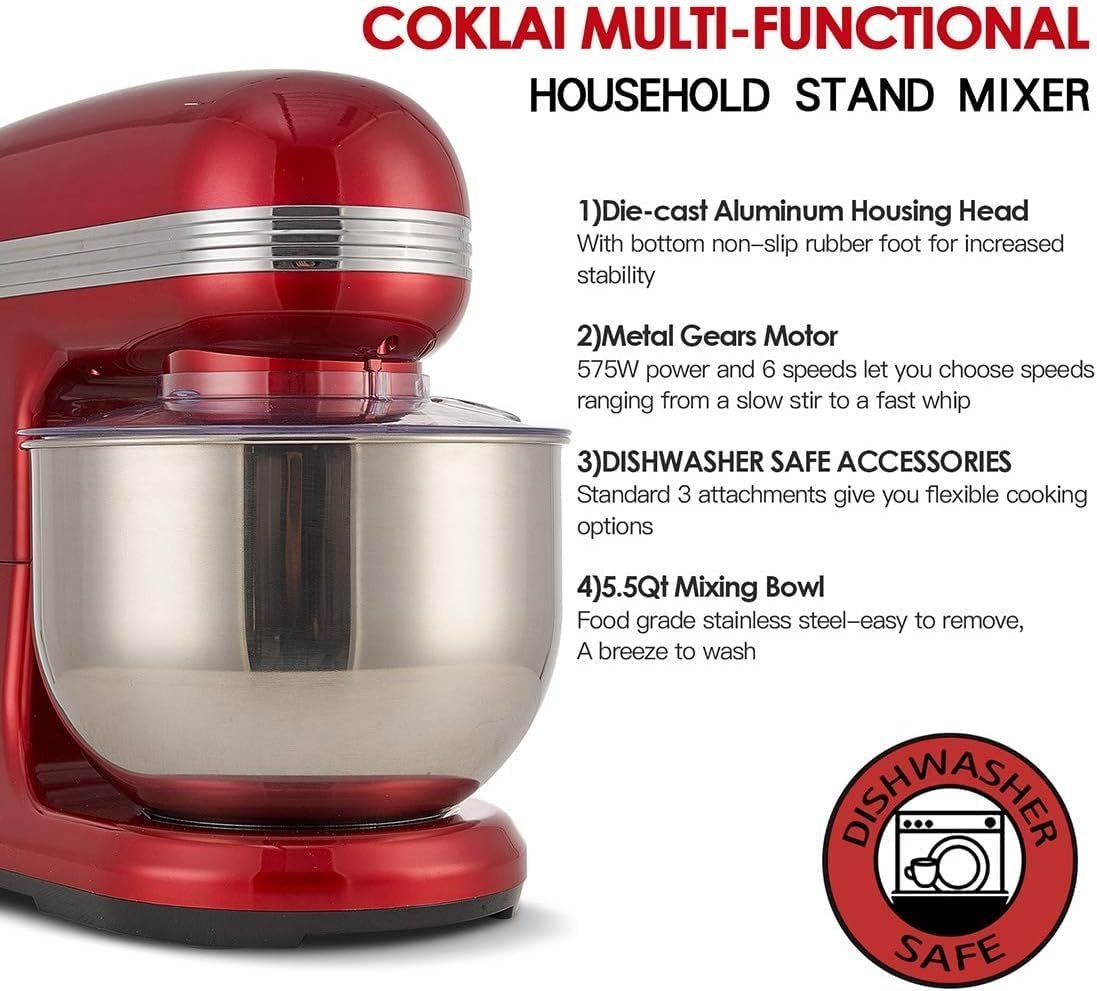 FOOD GRADE BOWL FOR BAKING: The cake mixer with bowl 5.5Qt is big enough to prepare homemade food for your family. It is made of high-quality food grade stainless steel— easy to remove, a breeze to wash, and can stand on the counter on its own.