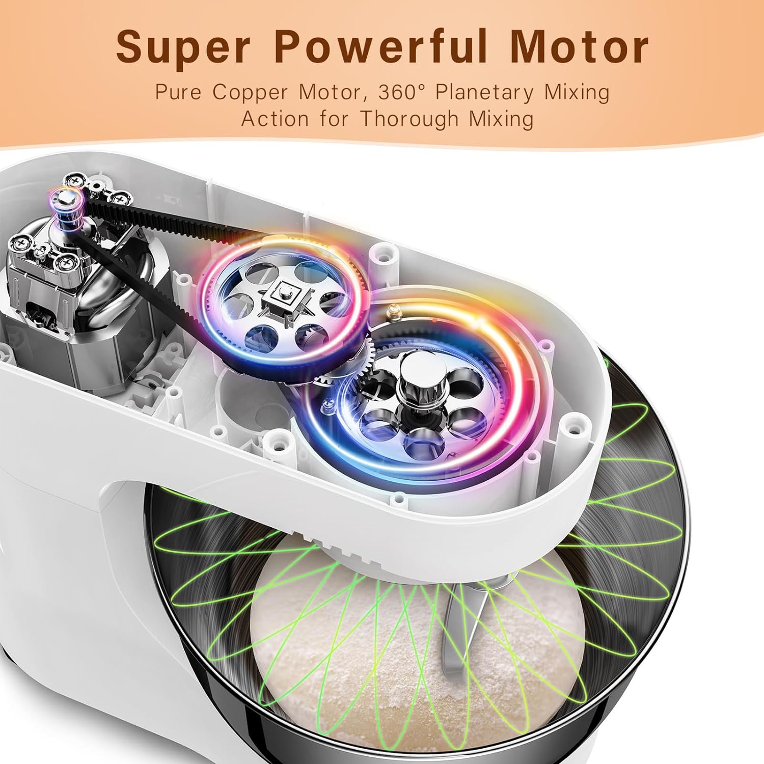 Safe &Sturdy Bowl: Made of food-grade stainless steel, it ensures the health of the whole family; Large 4.8QT capacity meets daily kitchen requirements; The bowl can be fixed to the base, which makes it stay steady during mixing work; Considerable design of a handle will facilitate your operation; With suction cups on the bottom of the base, the kitchen mixer won’t move all over the counter