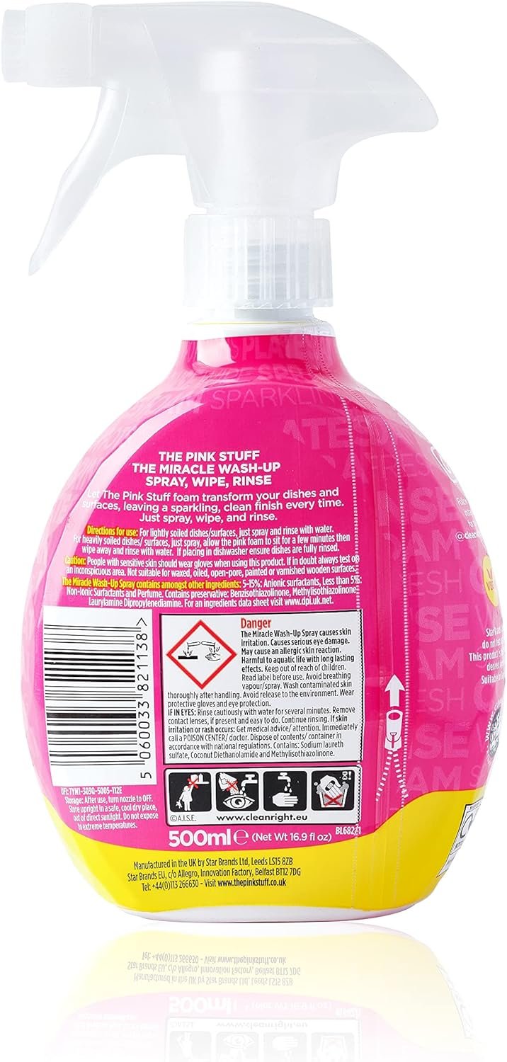 Let The Pink Stuff foam transform your dishes and surfaces, leaving a sparkling, clean finish every time. Just spray, wipe, and rinse.
