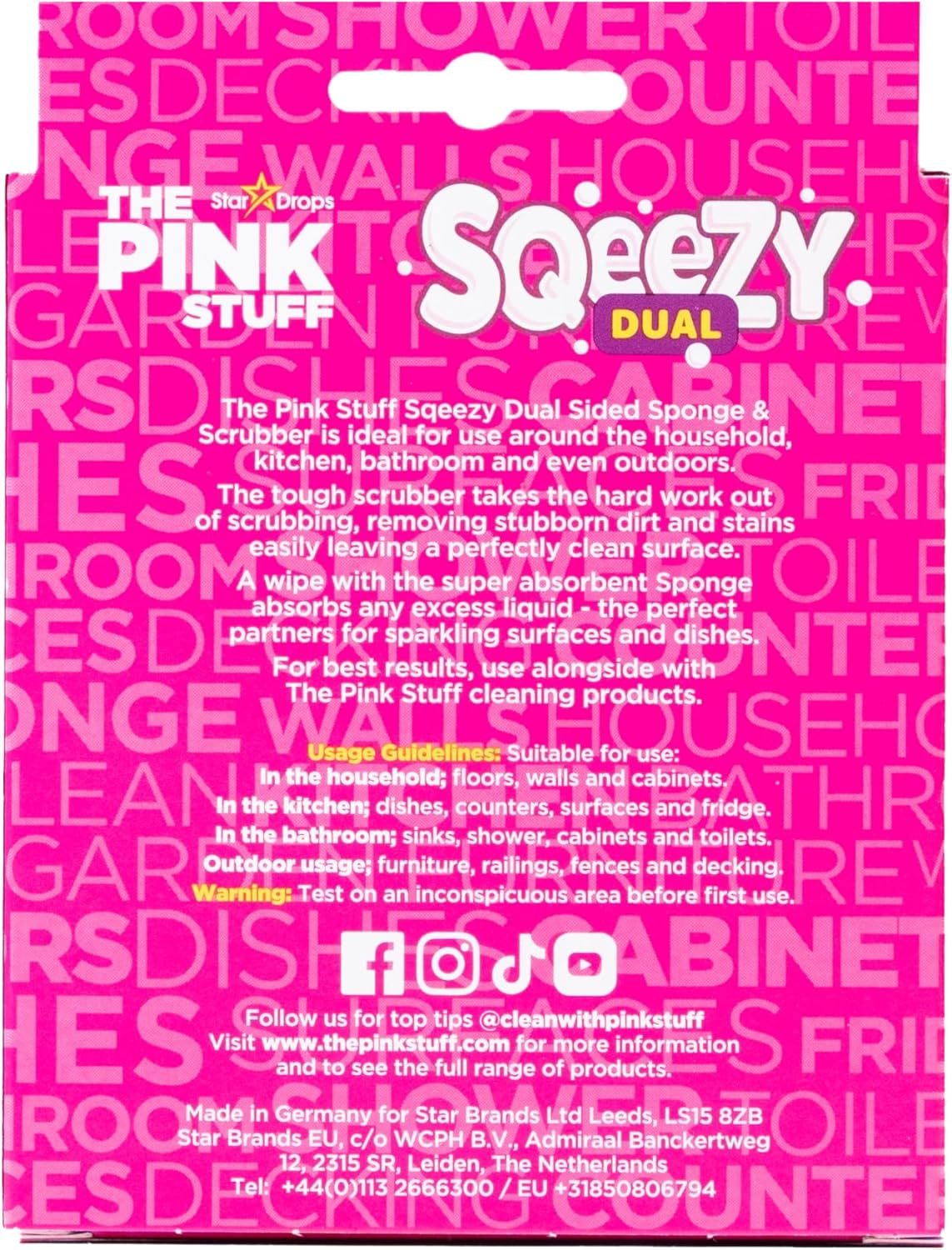 Transform your home with the power of The Pink Stuff – the ultimate cleaning solution trusted by millions. The Stardrops Pink Stuff Ultimate Cleaning Pack is your all-in-one answer to a spotless, sparkling home. Whether you’re tackling tough grime in the kitchen, stubborn soap scum in the bathroom, or everyday messes, this comprehensive cleaning set has you covered. What’s Included: The Pink Stuff Miracle Cleaning Paste (500g): Renowned for its tough cleaning power, this versatile paste removes stains, rust, grease, and grime from a wide range of surfaces. Despite its strength, it’s gentle enough to leave surfaces scratch-free, making it perfect for everything from pots and pans to tiles and glass. The Pink Stuff Multi-Purpose Spray (750ml): A powerful yet gentle cleaner that’s perfect for daily use around the home. This multi-purpose spray tackles grease and grime on kitchen counters, stovetops, appliances, and more, leaving a fresh and clean finish every time. The Pink Stuff Bathroom Foam Spray (750ml): Specifically formulated to deal with the unique challenges of bathroom cleaning, this foam spray cuts through soap scum, limescale, and hard water stains with ease. Your bathroom surfaces will be left sparkling clean. 3 SQeeZY Sponges: Designed for efficiency and convenience, this pack includes 2 durable scrubbing sponges for those tough jobs and 1 dual-sided sponge for versatile cleaning on both delicate and stubborn surfaces. These sponges are ergonomically designed to fit comfortably in your hand, making cleaning less of a chore. Why Choose the Stardrops Pink Stuff Ultimate Cleaning Pack? This ultimate cleaning pack delivers professional-grade results right in your own home. Each product is formulated to be tough on dirt but gentle on surfaces, ensuring you achieve the best possible results with minimal effort. The inclusion of the SQeeZY sponges provides added convenience, offering both scrubbing power and versatility for a wide range of cleaning tasks. Perfect for Every Home: Whether you’re spring cleaning, doing a weekly refresh, or dealing with everyday messes, the Stardrops Pink Stuff Ultimate Cleaning Pack offers everything you need to keep your home looking its best. The combination of the iconic Miracle Cleaning Paste, Multi-Purpose Spray, and Bathroom Foam Spray ensures that every corner of your home can be effortlessly cleaned, while the SQeeZY sponges provide the perfect tools to make your cleaning routine even more efficient. Say goodbye to cluttered cabinets full of different cleaners. With The Pink Stuff, you have a trusted solution that delivers unbeatable results, leaving your home not only clean but also gleaming with pride. Upgrade your cleaning arsenal today with the Stardrops Pink Stuff Ultimate Cleaning Pack – because every home deserves to shine!