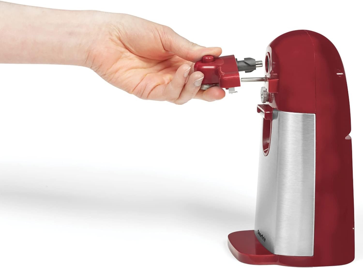 - Convenient features like removable lever, cord storage, magnetic lid holder, and can pin guide.