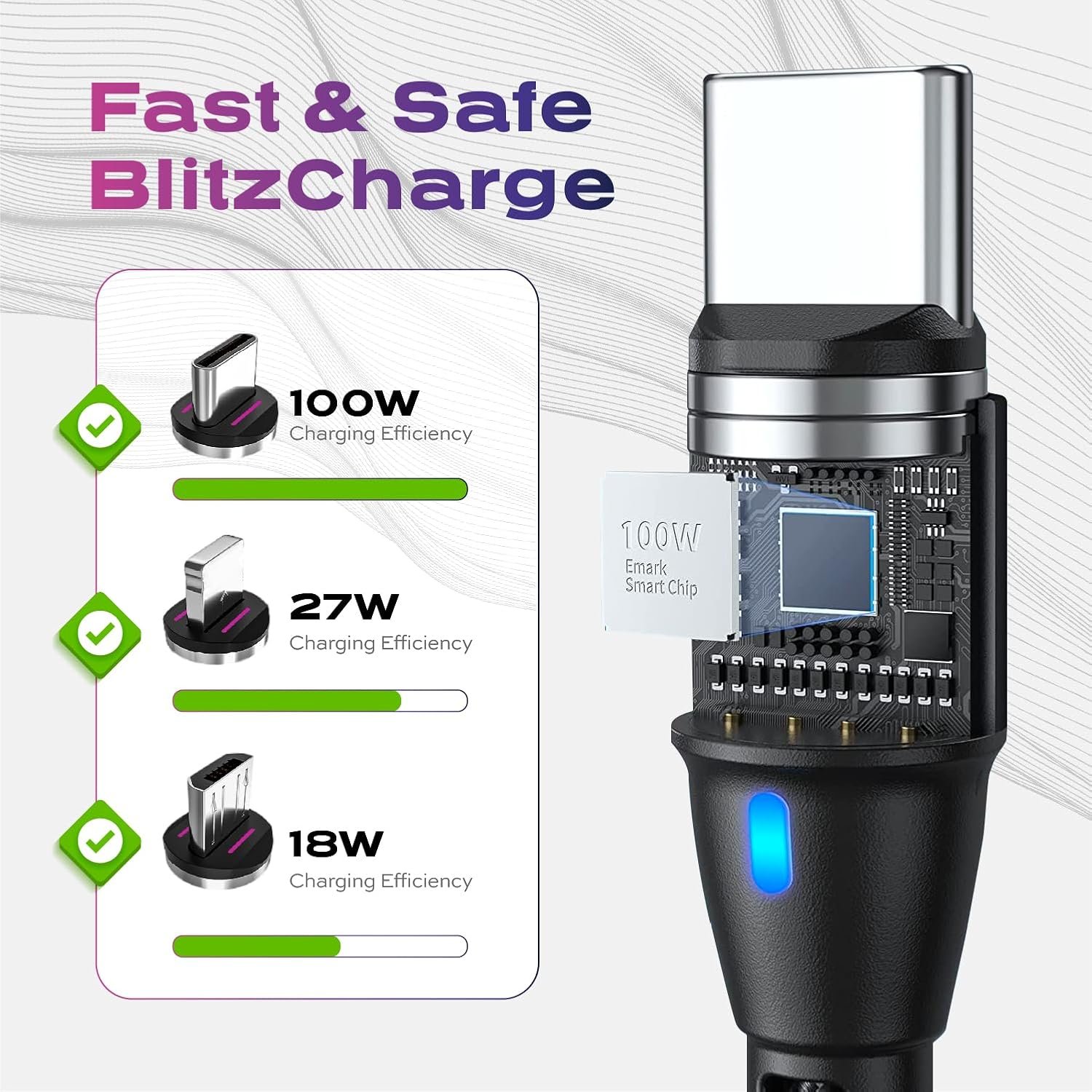 𝟏𝟎𝟎𝐖 𝐁𝐥𝐢𝐭𝐳𝐂𝐡𝐚𝐫𝐠𝐞 𝐓𝐞𝐜𝐡𝐧𝐨𝐥𝐨𝐠𝐲: Get back to the fun faster, with the new Statik360 Pro charger apple compatible – the Statik 360 Pro USB C magnetic phone charger. It is a magnetic charge cable USB C with BlitzCharge chip making it capable of fast charging any device including laptops, smartphones, tablets, drones, and more.