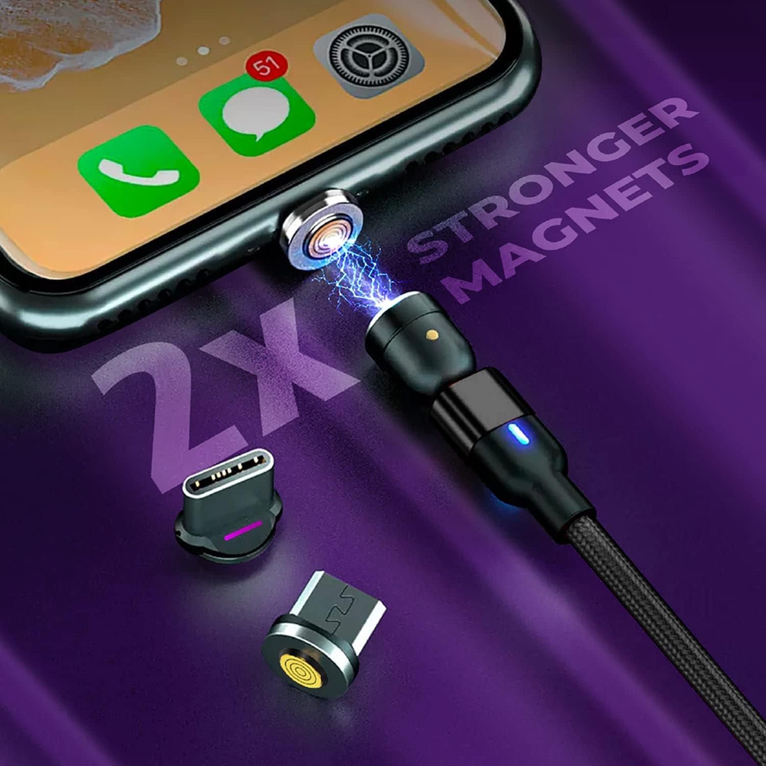 Statik 360 Pro Magnetic Phone Charger Cable, Magnetic USB C Charging Cable, 3-in-1 Magnetic Charger Cable, iProduct, Micro-USB, USB-A & USB C Magnetic Charging Cable, Black Magnetic Cable, 6FT/2M