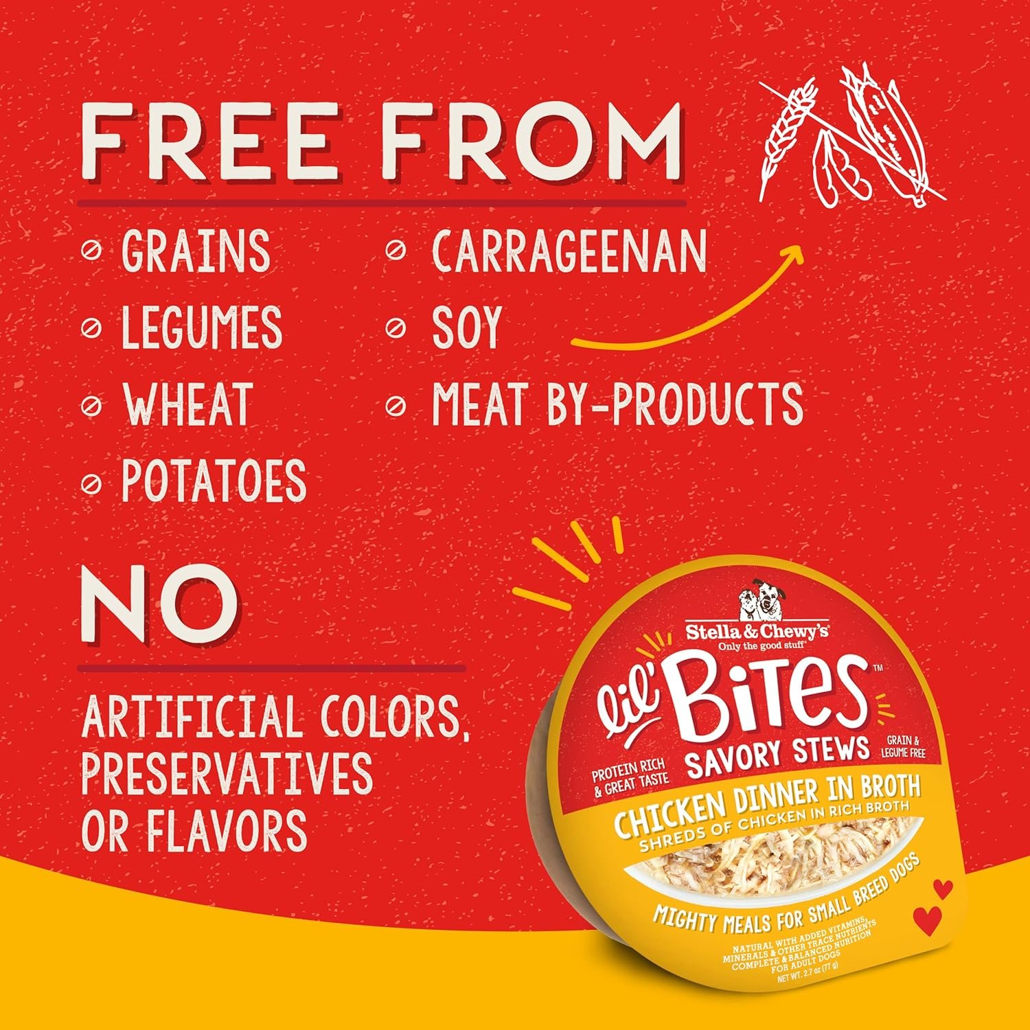 Stella & Chewy’s Lil’ Bites Savory Stews are crafted with real shredded muscle meat that is rich in high-quality protein to help your dog eat as nature intended.