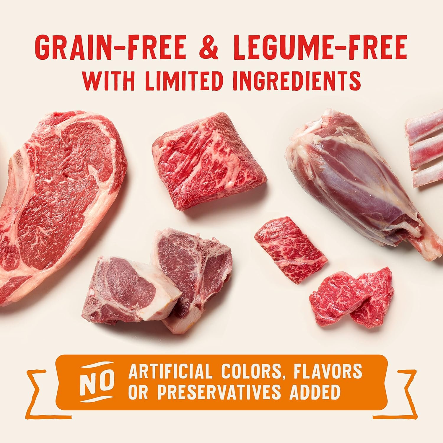 Only the Good Stuff: Our low-carb and high-protein recipe has NO potatoes, grains, peas, lentils, or by-product meals — never any artificial colors, flavors or preservatives