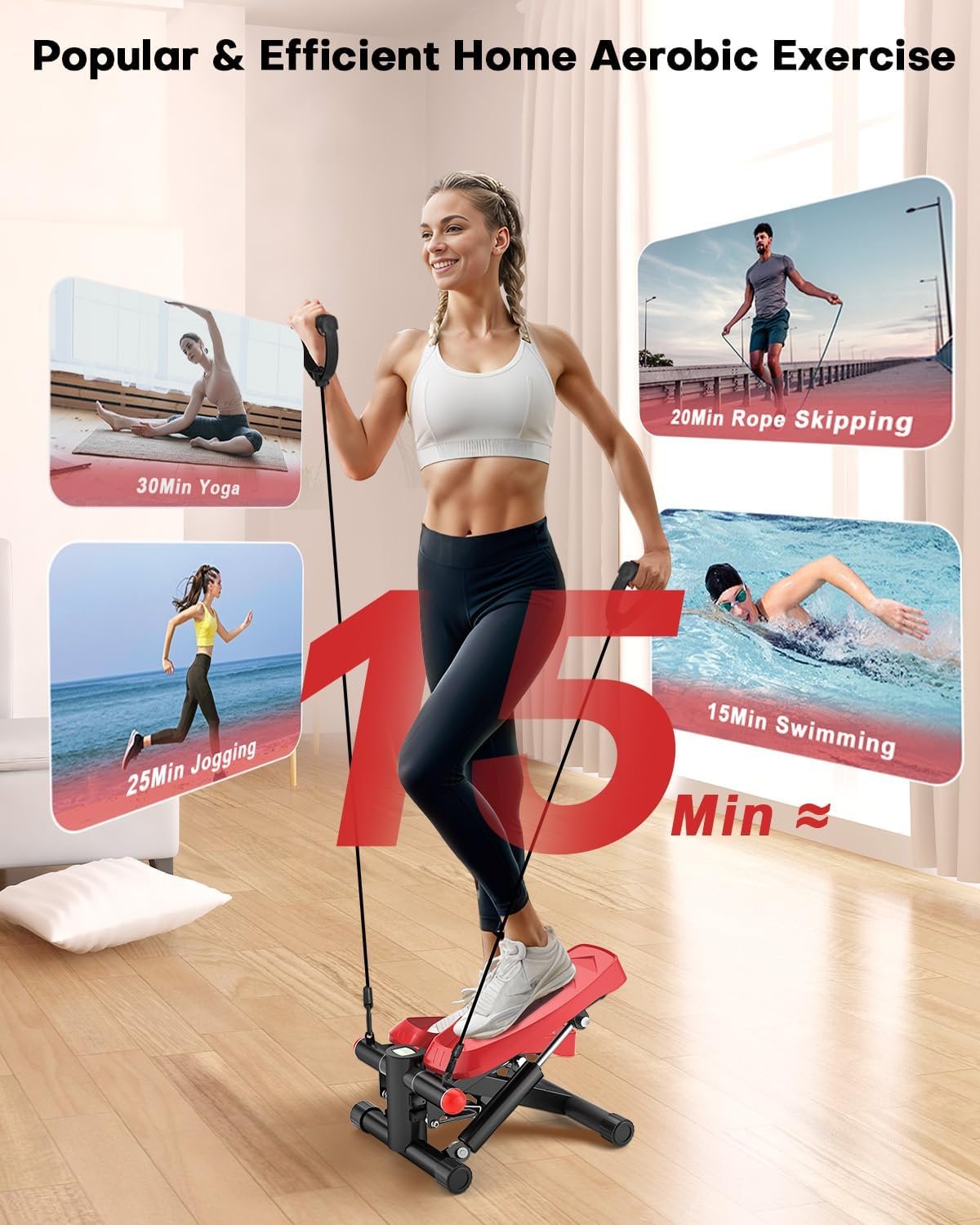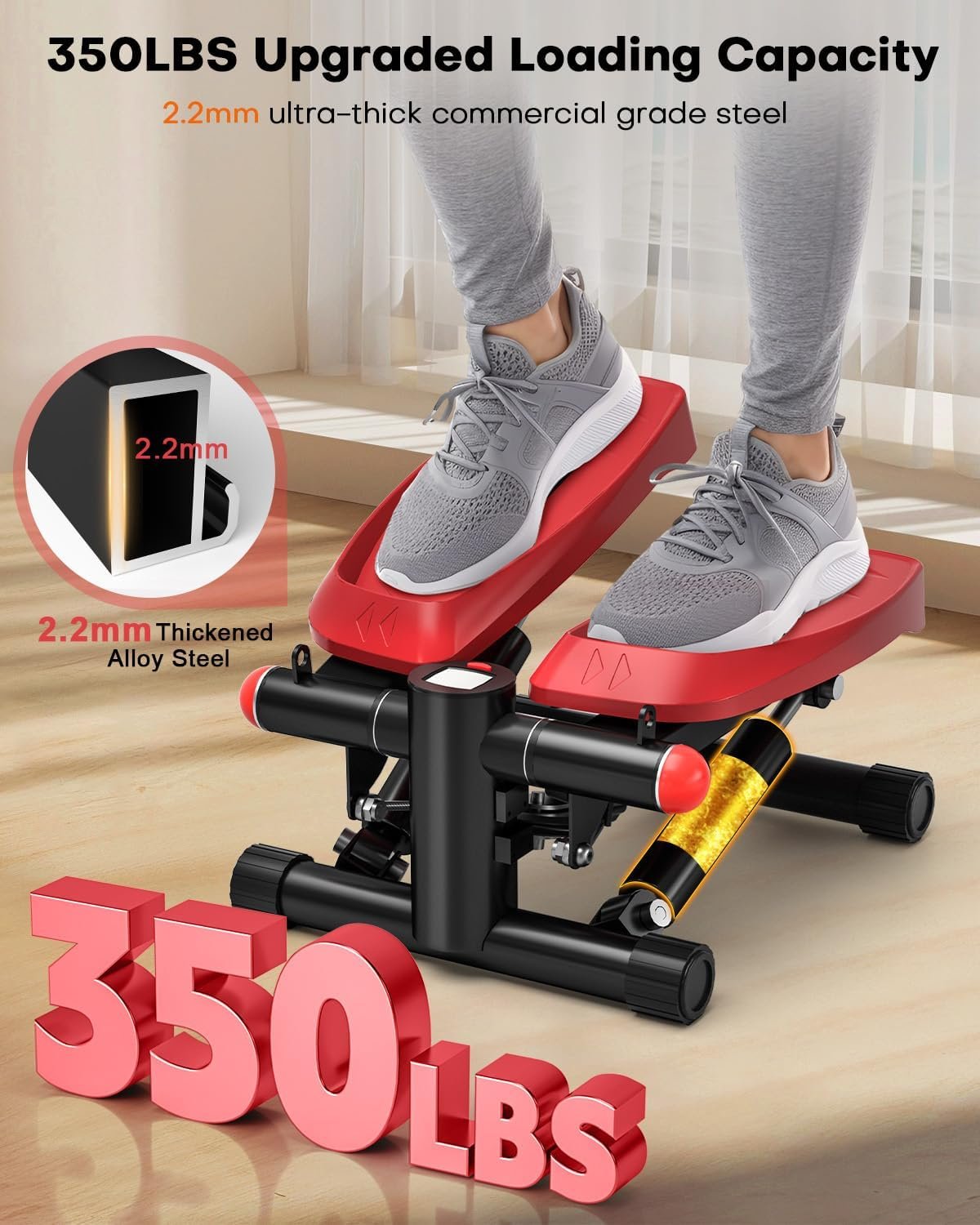 350 LBS Loading Capacity: Made from premium materials such as 2 mm thickened steel and steel cables, our stepper can support up to 350 lbs. Its robust construction guarantees stability and safety, even during rigorous exercise sessions.