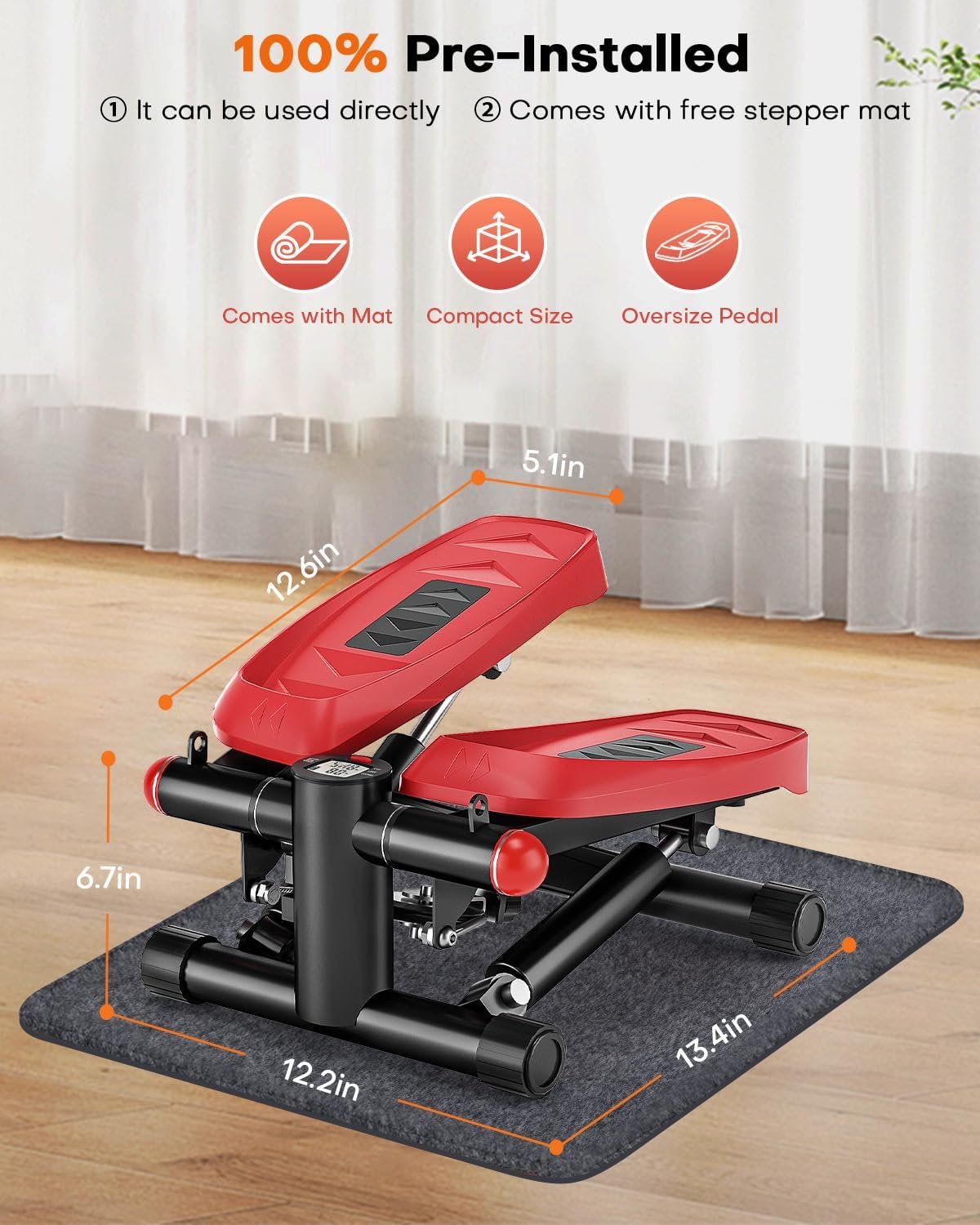 100% Pre-Assembled & Includes a Free Mat: Our exercise stepper arrives ready to use straight out of the box. No assembly required! Simply open the package and dive into your workout without any hassle. Additionally, you’ll receive a complimentary stepper mat to safeguard your floors from scratches.