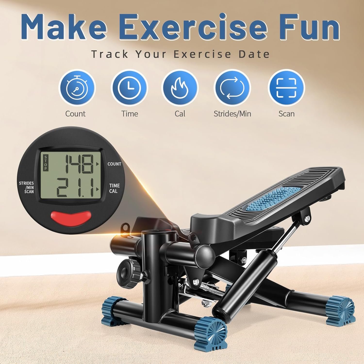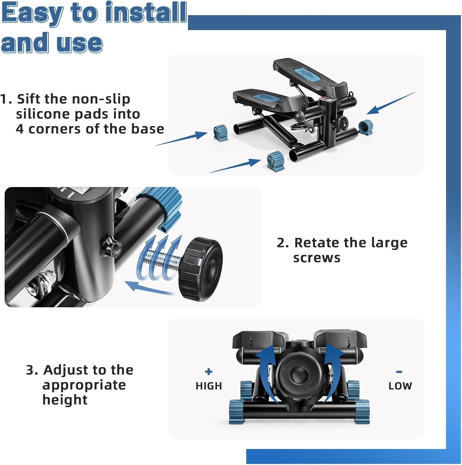 Adjustable Step Height – There is a stride adjustment knob at the front of stepper. Customize your workout with adjustable height setting for calorie burning according to your needs