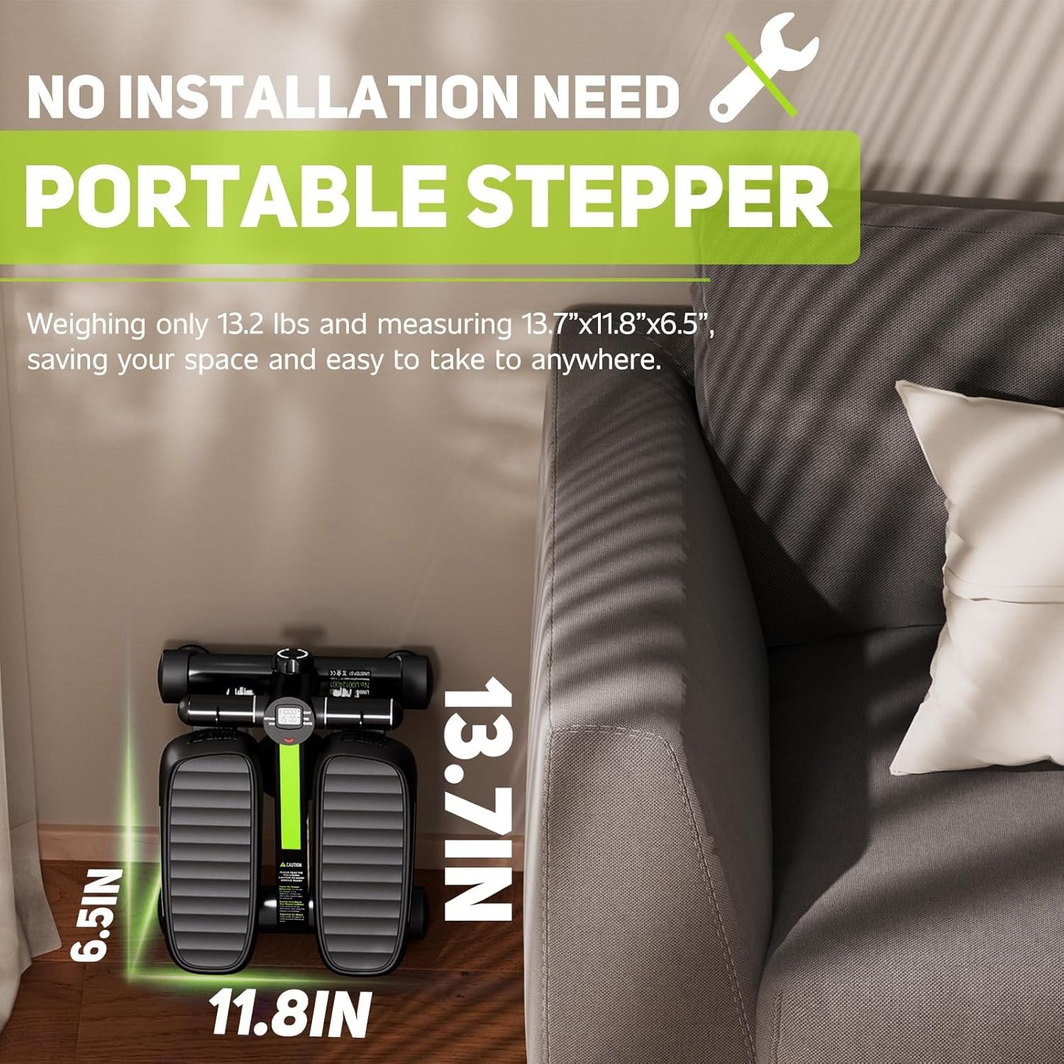Portable and Convenient: Weighing only 13.2 lbs and measuring 13.7”x11.8”x6.5”, the mini stair stepper is easy to carry and store. Use it while watching TV and store it easily afterward.