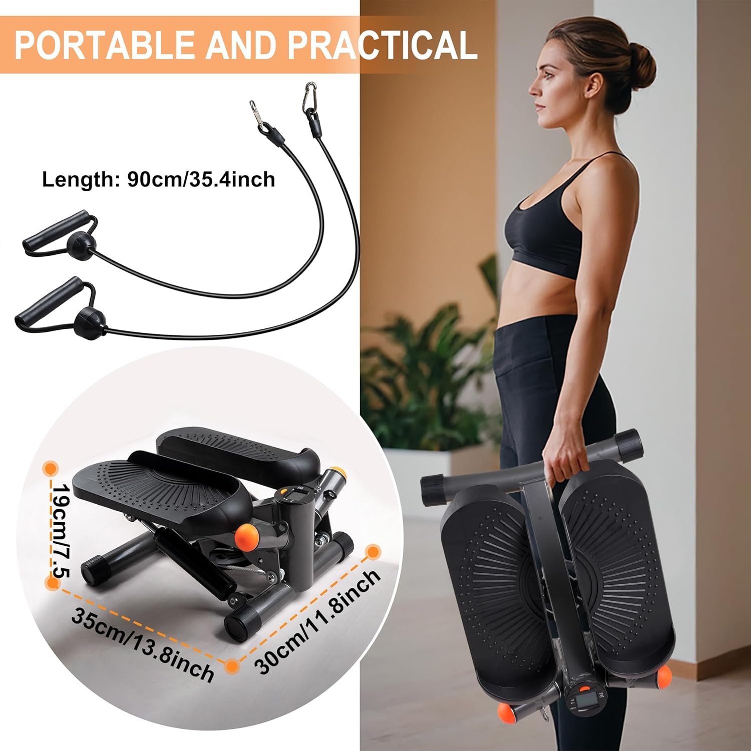 PRODUCT INFORMATION:The size of the fitness stepper is 15.3*12.9*7.6inches, with a small footprint and a maximum weight capacity of 220 pounds.