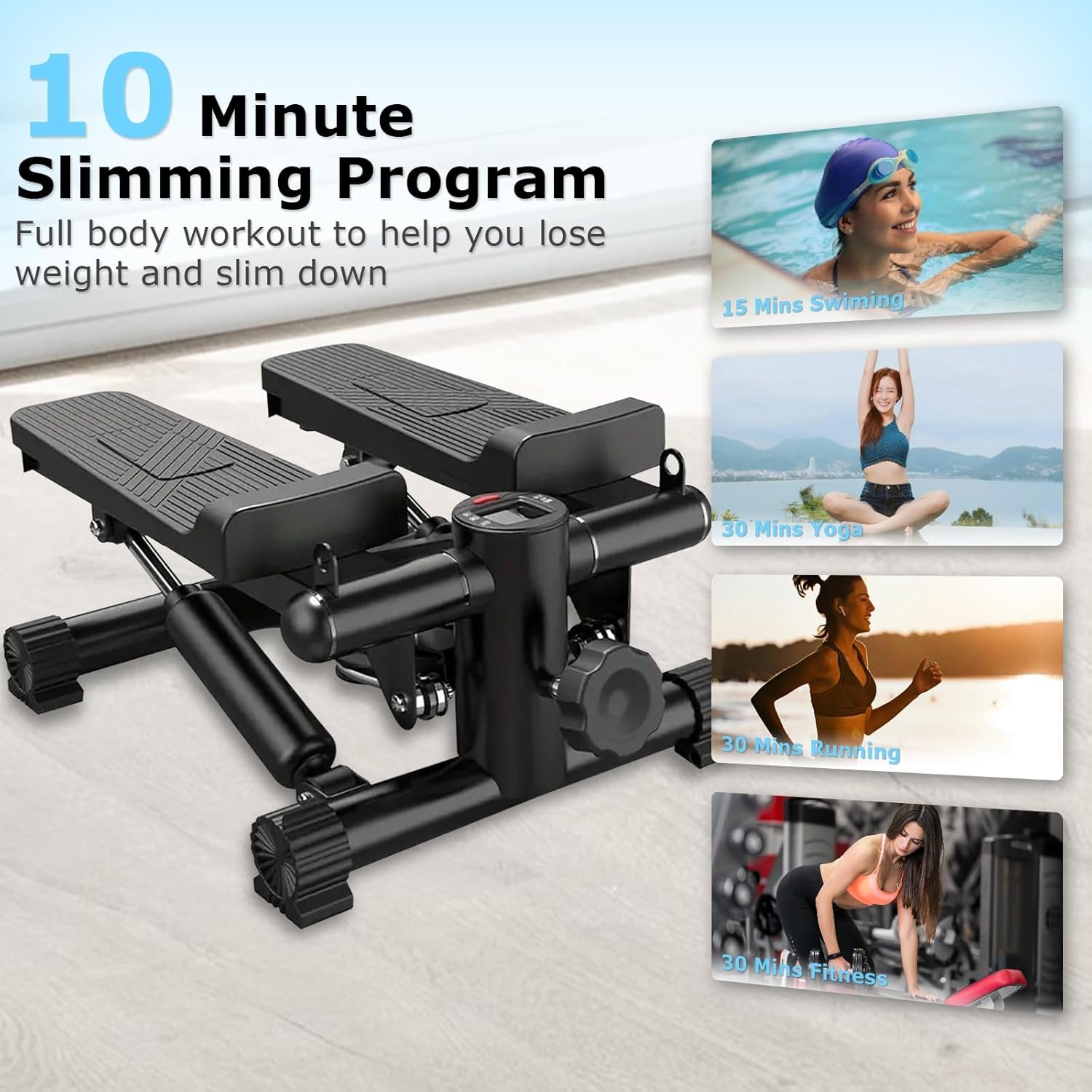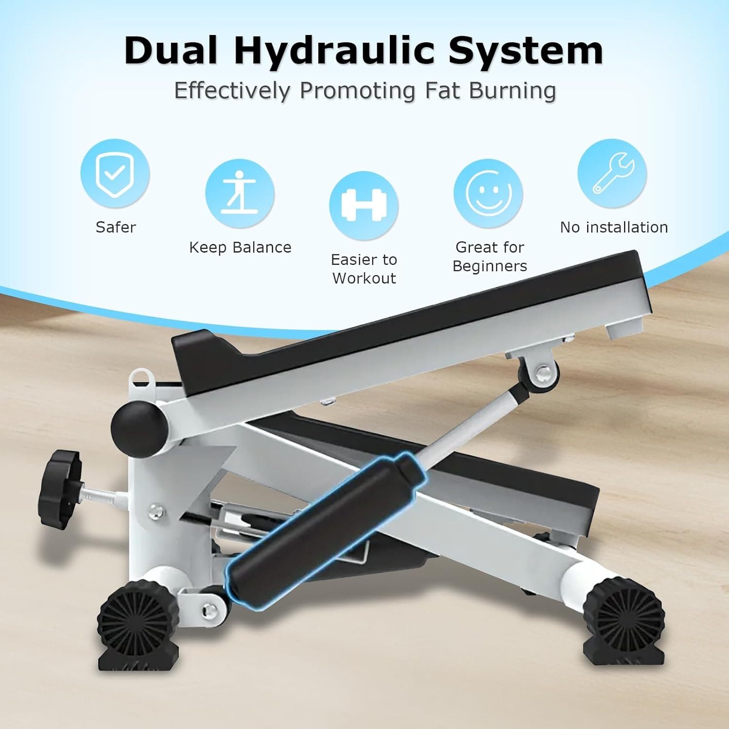 This stepper offers a smoother and quieter workout experience with a dual hydraulic system, providing higher resistance and better stability. It features a digital display to track your progress, showing count, time, calories burned, and strides per minute. The real weight capacity is 330 lbs, with thickened steel ensuring stability and durability during exercise.