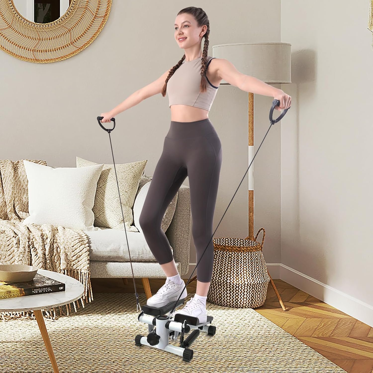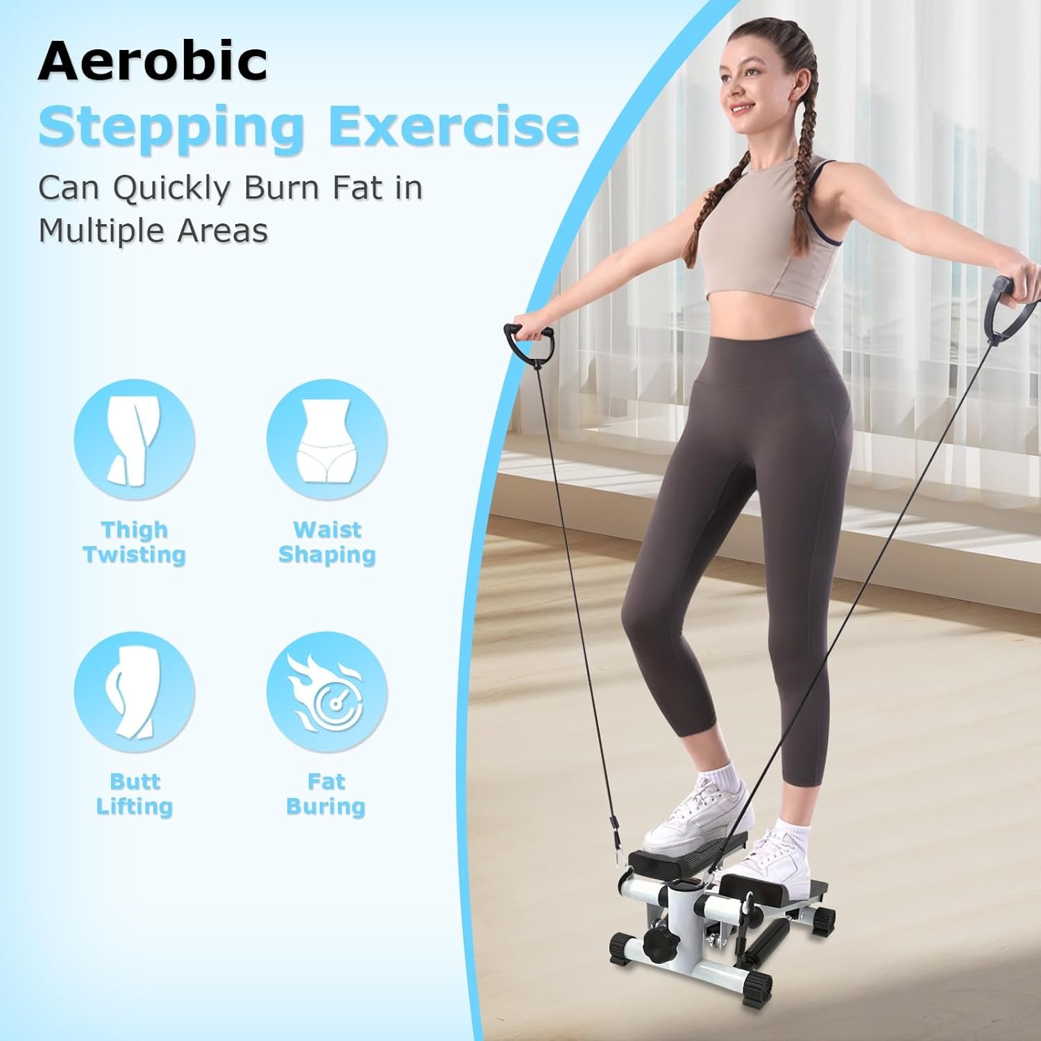 Unlimited Fat Burning&Full Body Shaping:Stair stepper burns body fat, increases heart rate and promotes metabolism through 10 minutes of stepping exercise. It is also equipped with a detachable resistance band, allowing you to achieve effective weight loss and body shaping effects. Whether you are a woman, man or a fitness enthusiast, exercising at home or in the office, it is a very good choice.