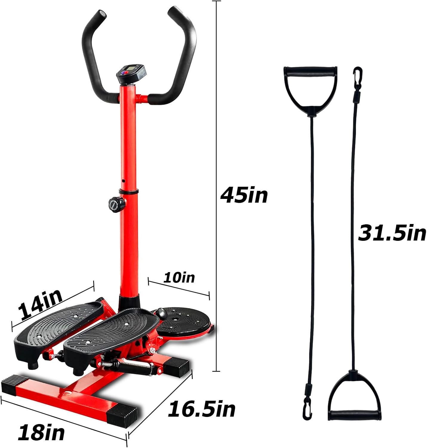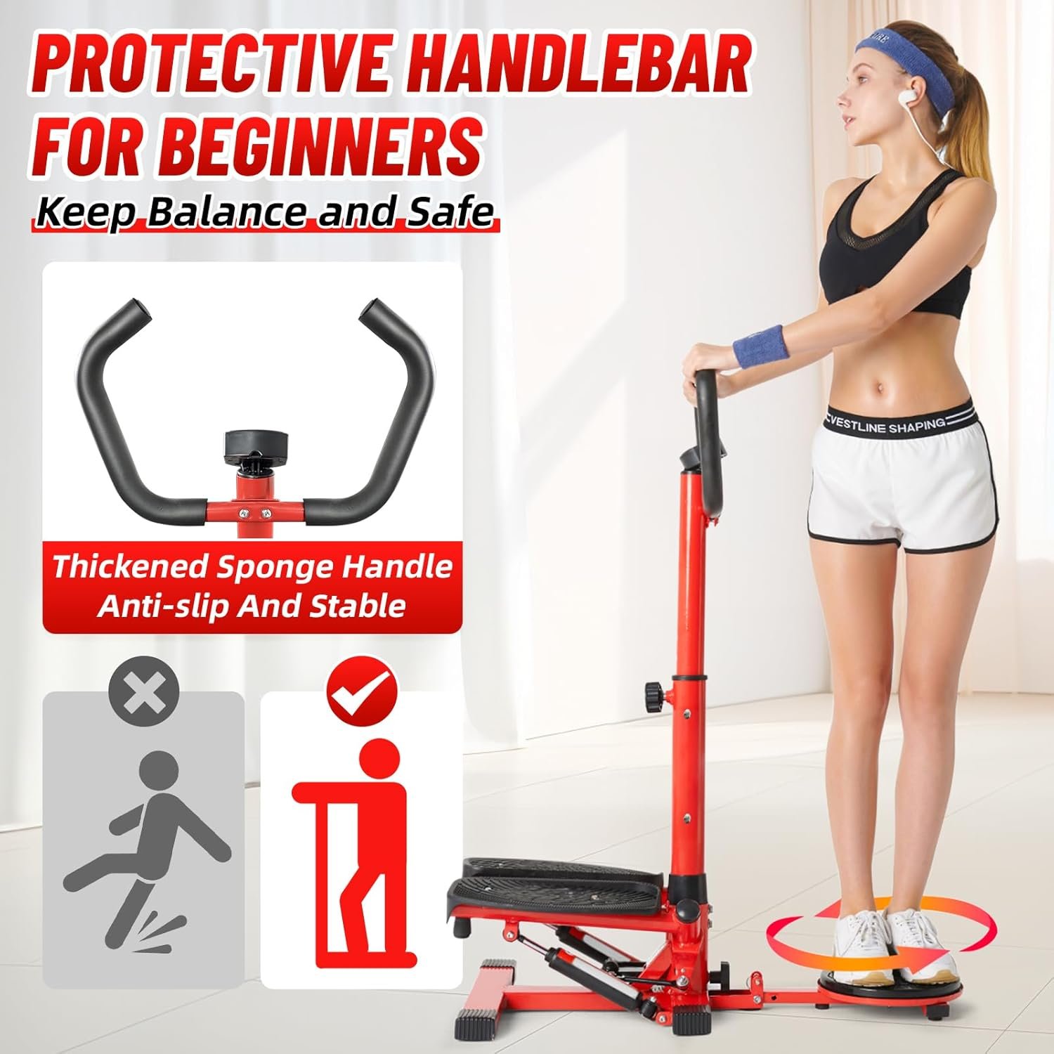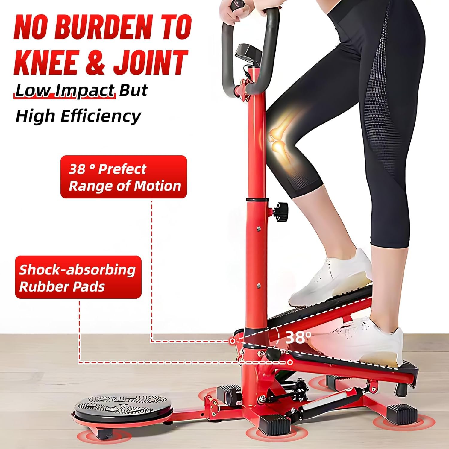 HIGH LOAD-BEARING CAPACITY: Our Stepper with Handlebar is constructed using thickened metal material, ensuring a strong load-bearing force of up to 300 pounds. With its stability and smooth movement, this twist stepper is designed to support intense workouts without any shaking.