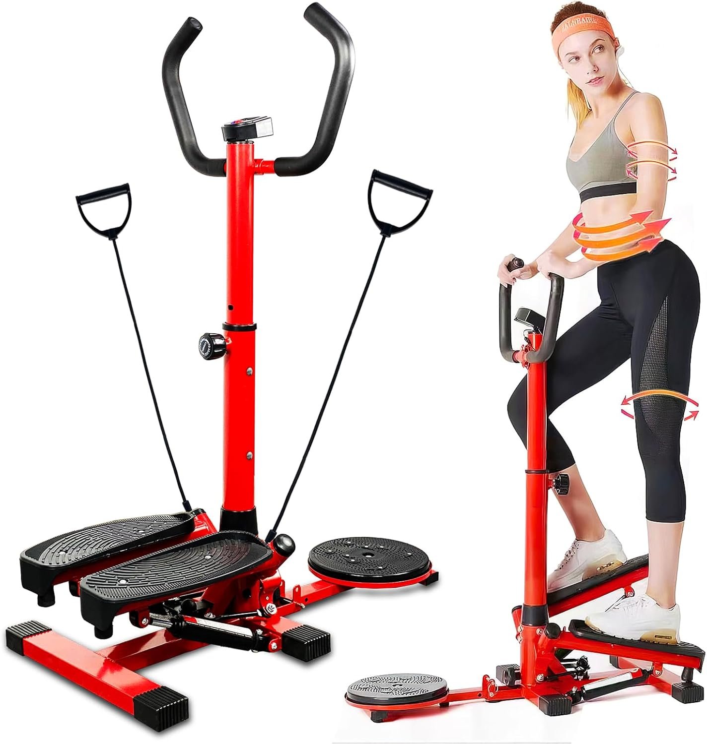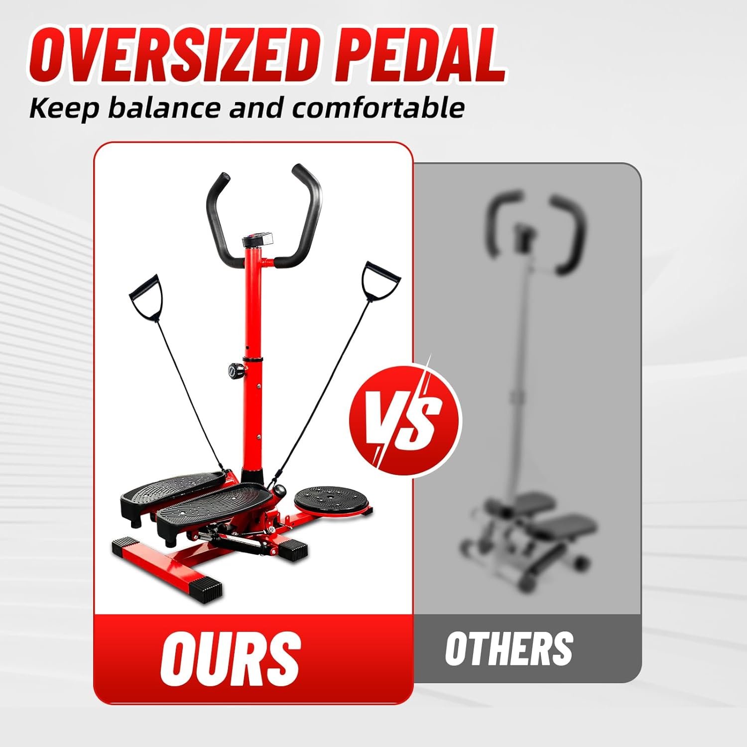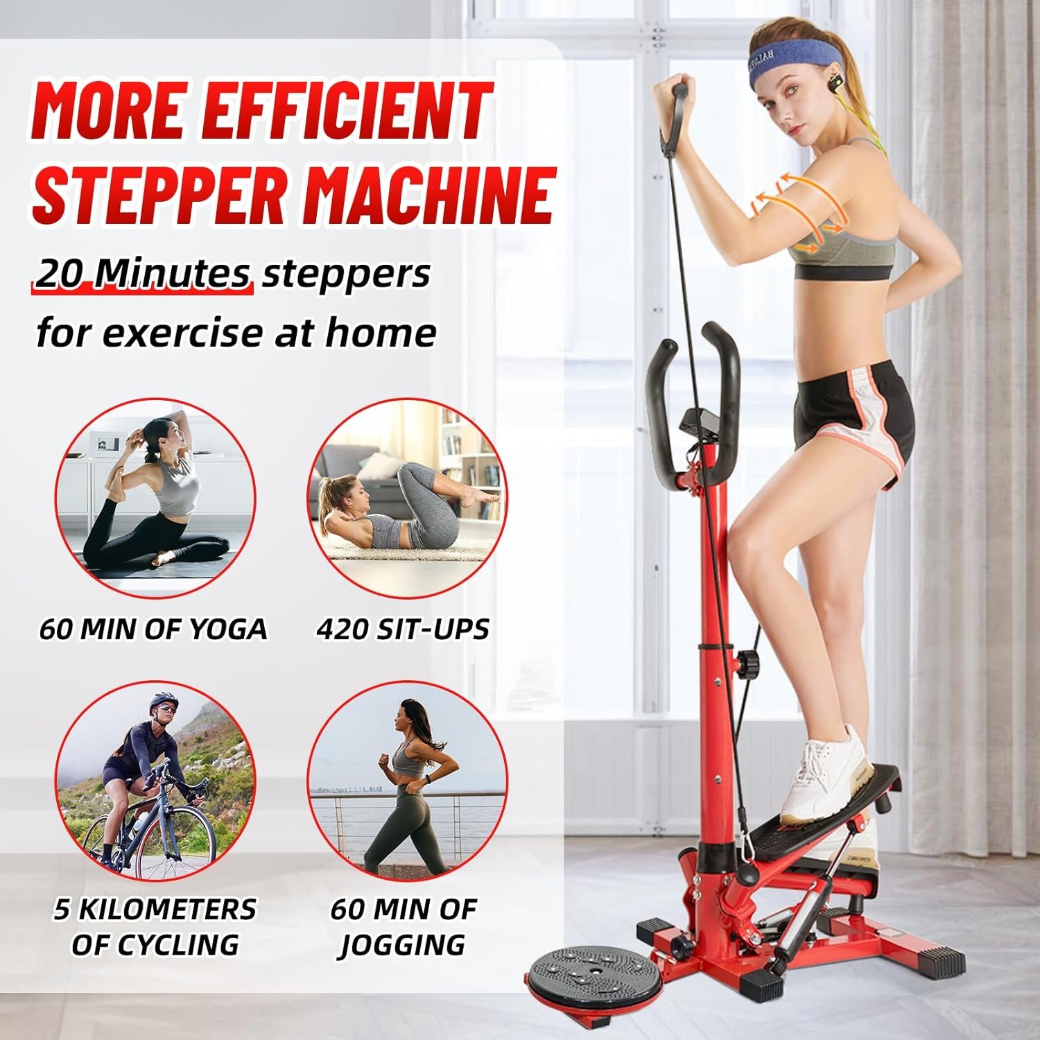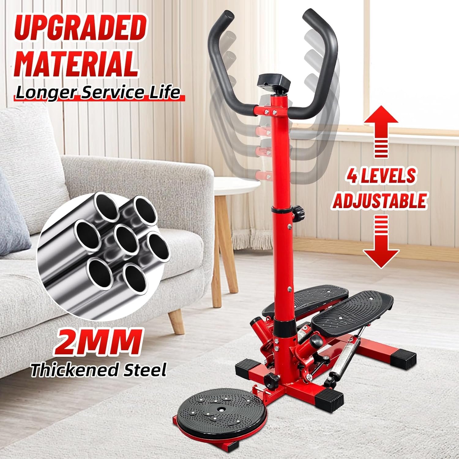 HIGH LOAD-BEARING CAPACITY: Our Stepper with Handlebar is constructed using thickened metal material, ensuring a strong load-bearing force of up to 300 pounds. With its stability and smooth movement, this twist stepper is designed to support intense workouts without any shaking.