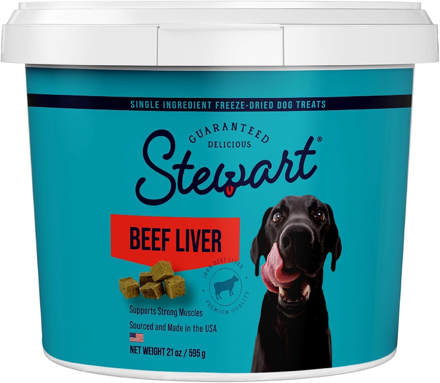 Contains: one 21 oz tub of Stewart Beef Liver Freeze Dried Dog Treats