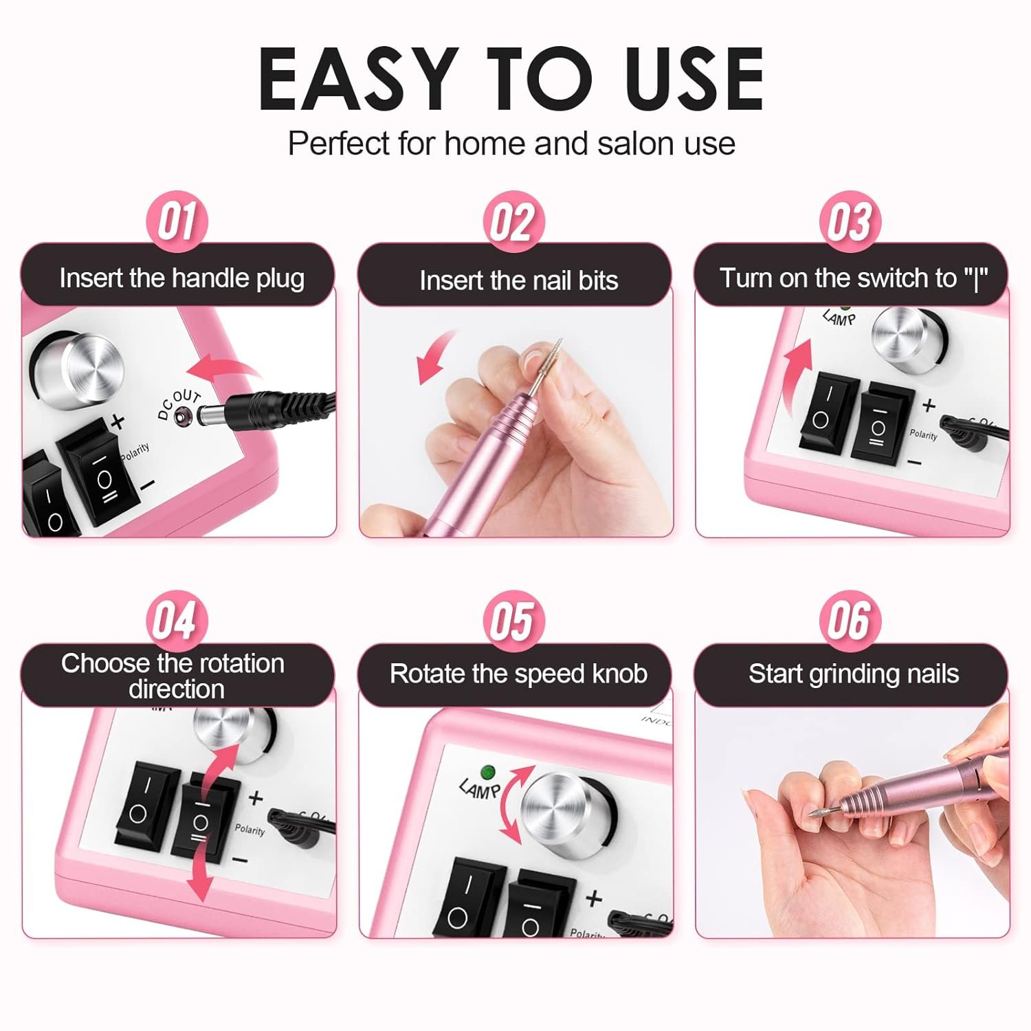 All in One Acrylic Nail Drill – Just a nail file drill meets all your needs, multifunctional use for nails prep, acrylic nails, gel nails, dip powder nails, thick nails, nail grinder, manicure & pedicure, callus removal, natural nails, routing, nail machine for acrylic nails, polishing, etc. The nail drill for gel nails is the best choice for you to do your nails.