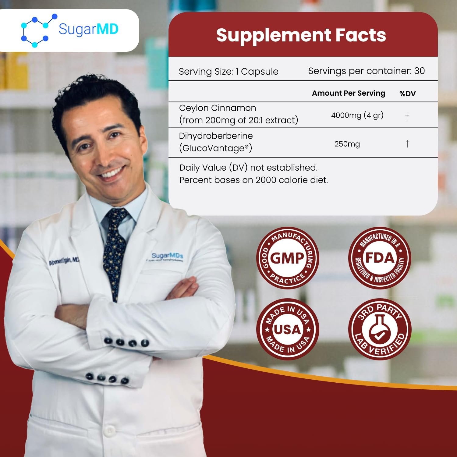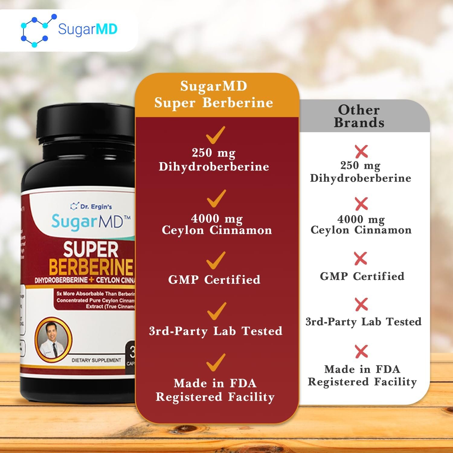 𝐃𝐨𝐜𝐭𝐨𝐫 𝐅𝐨𝐫𝐦𝐮𝐥𝐚𝐭𝐞𝐝: All SugarMD products, including Super Berberine with Ceylon Cinnamon, are formulated by a Cleveland Clinic graduate and a well-known medical doctor. extensive research and thousands of hours working with patients set us apart from other brands. With a focus on your health and happiness, SugarMD Super Berberine is vegan, non-GMO & allergy-free and contains no soy, gluten, or preservatives.