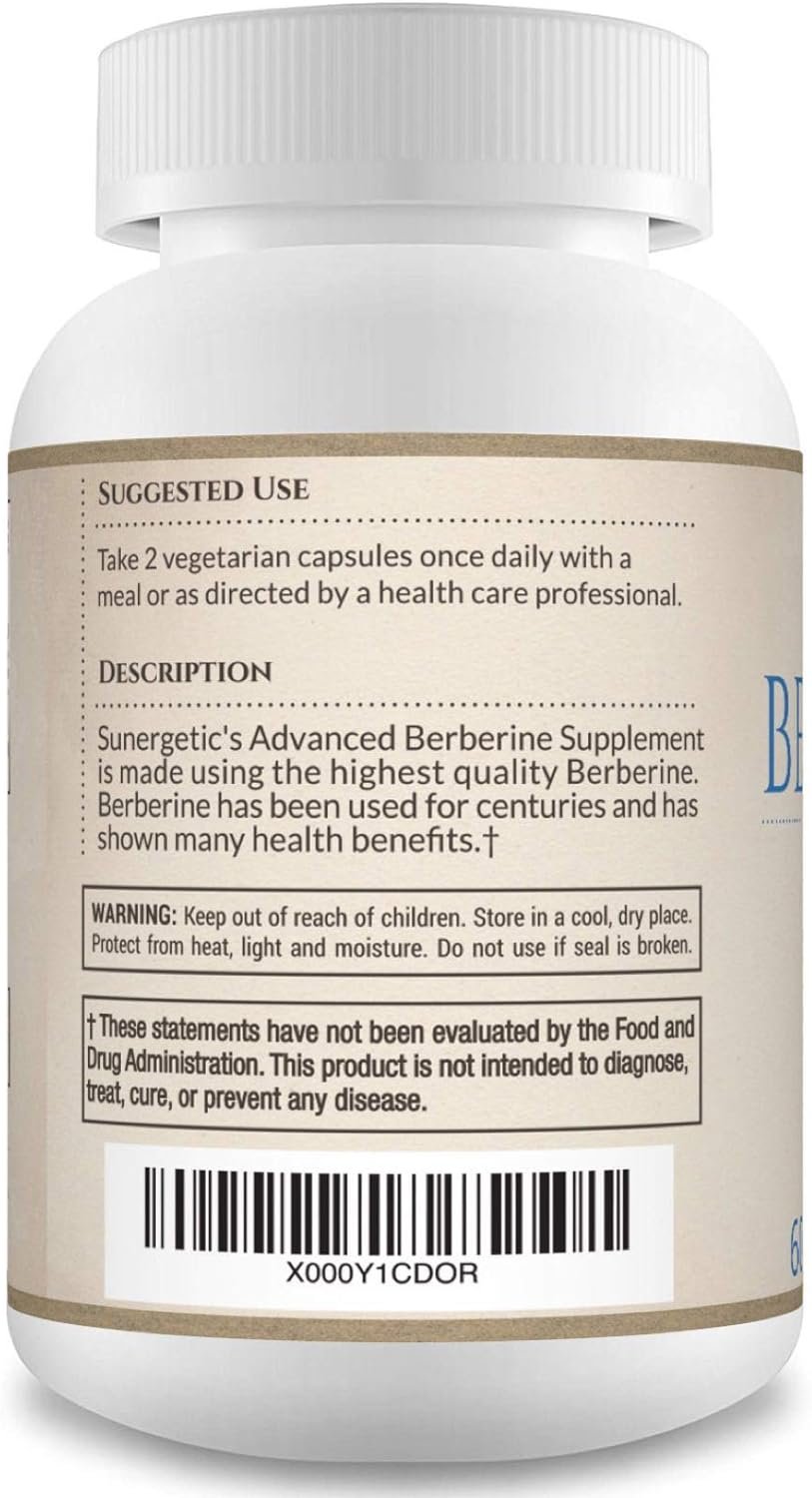 ADVANCED BERBERINE SUPPLEMENT: Our Berberine Supplement provides 600mg of Berberine HCI per capsule. Just two capsules of Sunergetic’s Berberine formula, provides 1,200 mg of high quality Berberine. Our Berberine HCI capsules are easy to swallow, vegetarian and convenient.